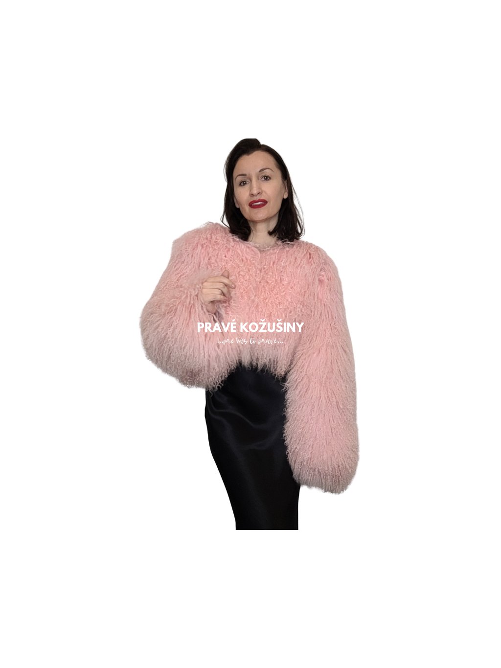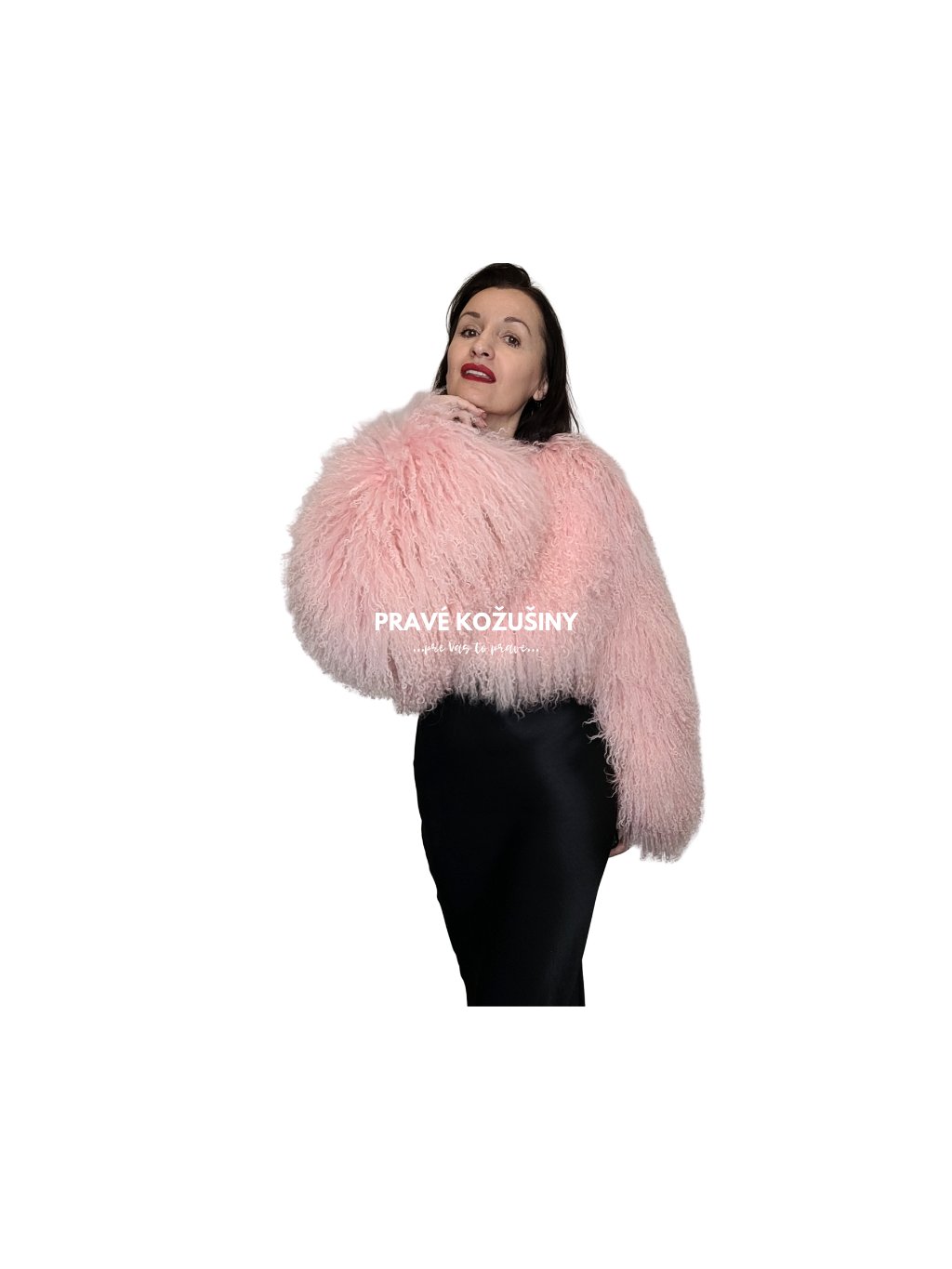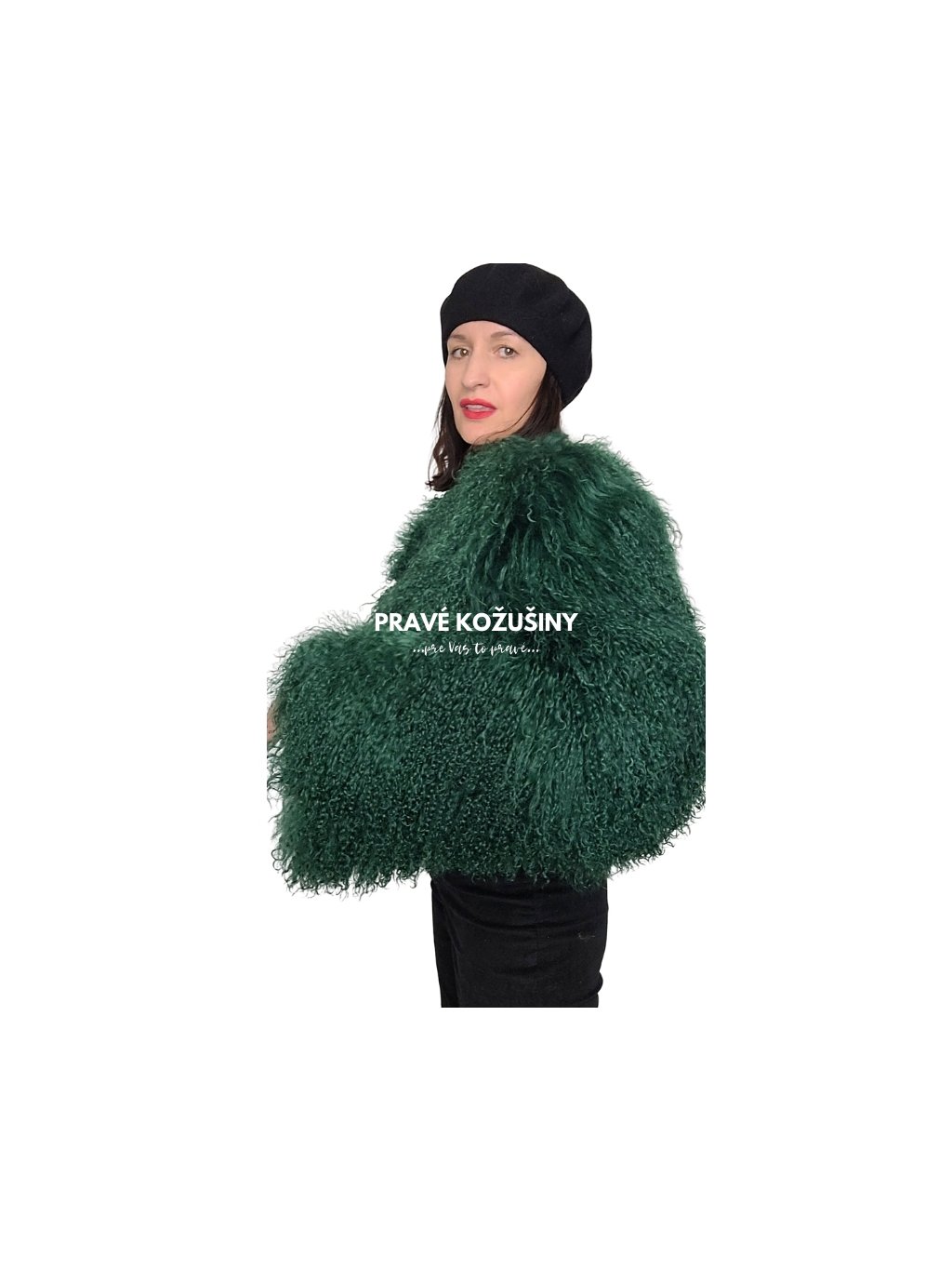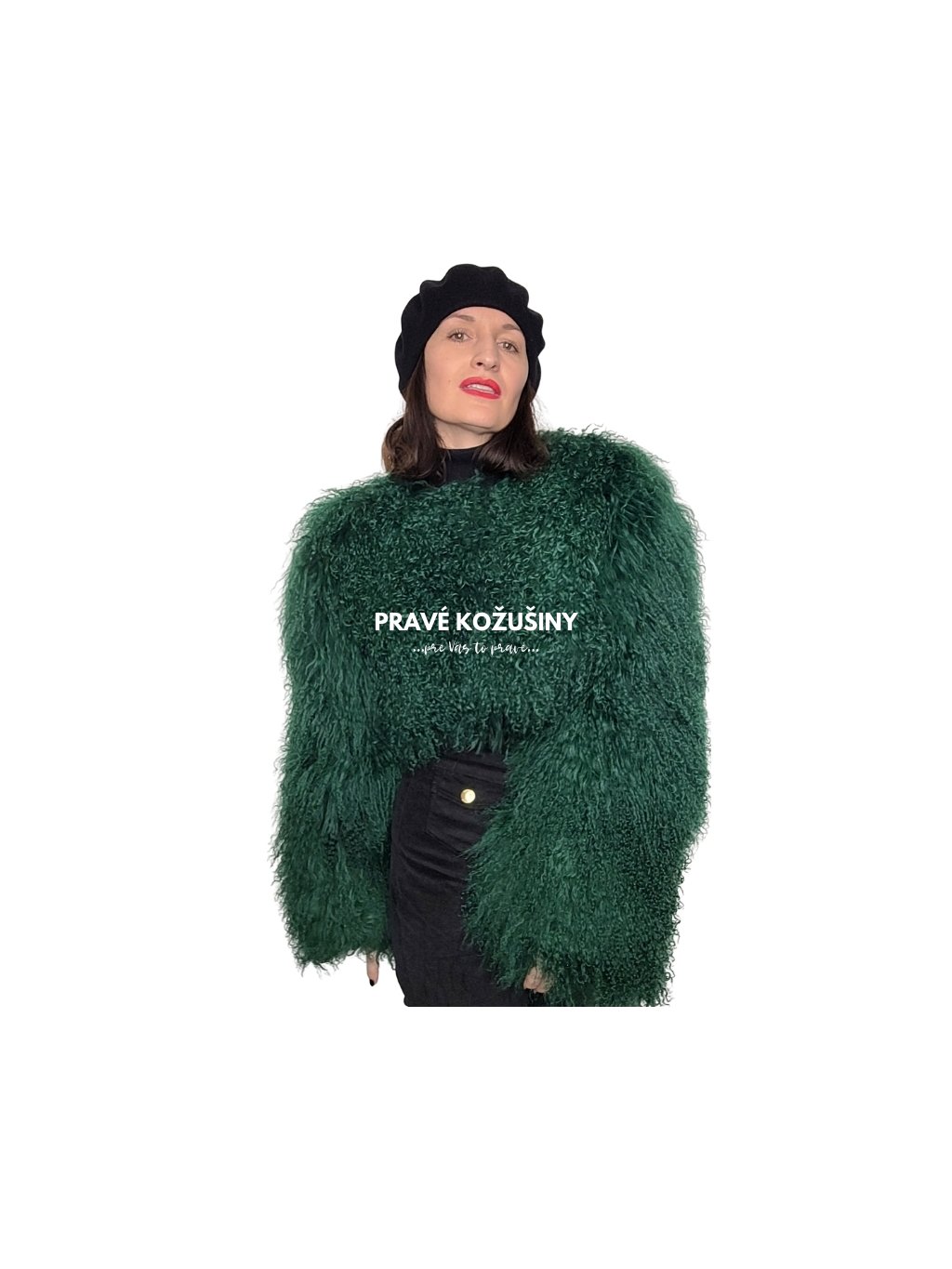 Bolérko - krátky kabátik je vyhotovené z pravej kožušiny mongolskej ovce.