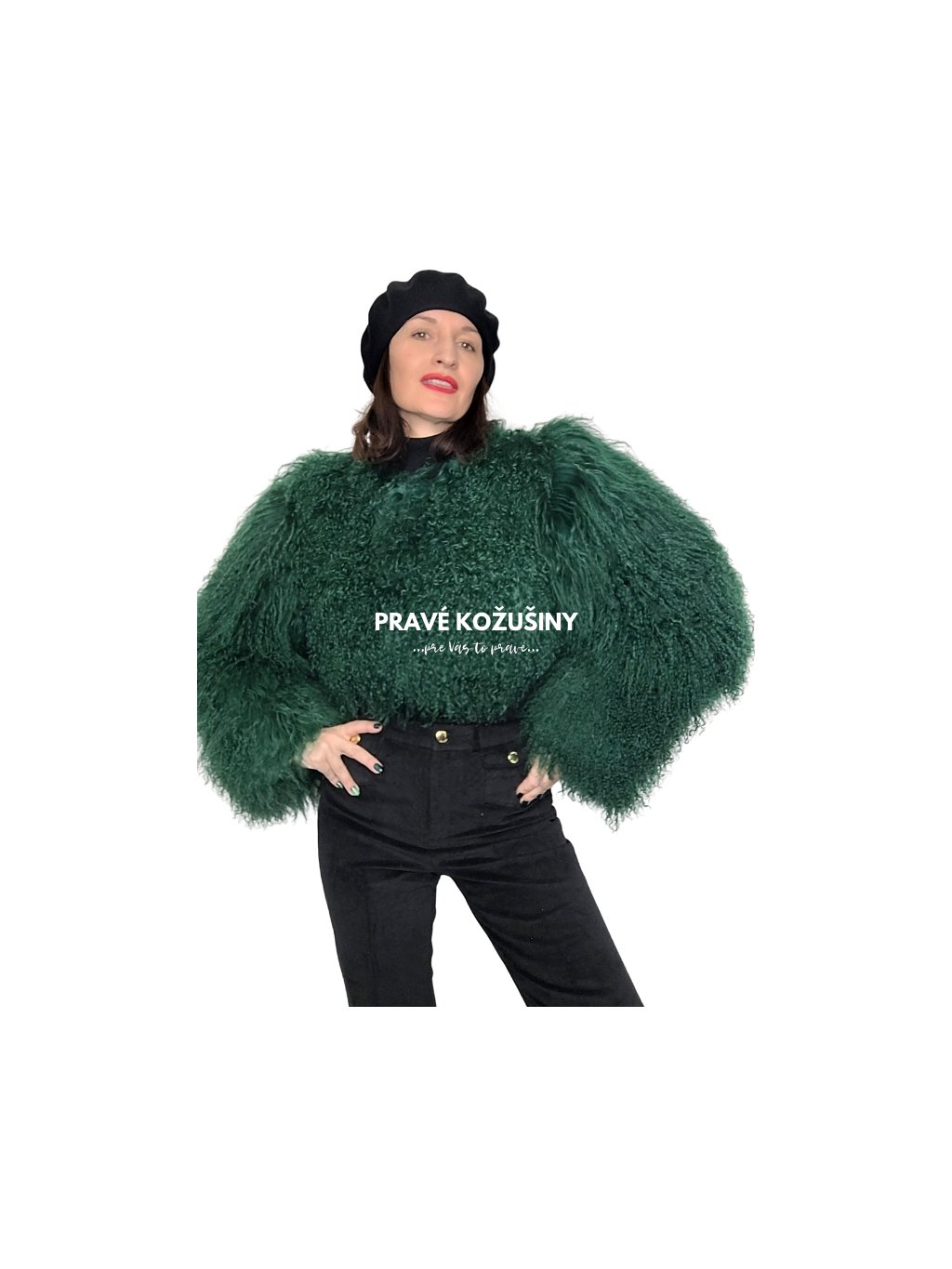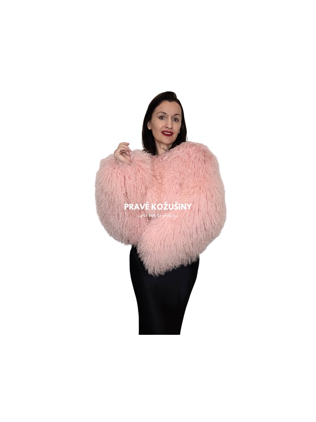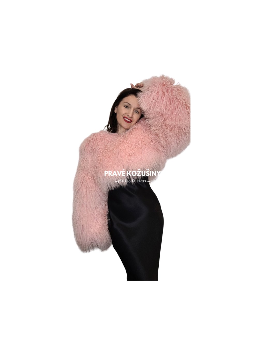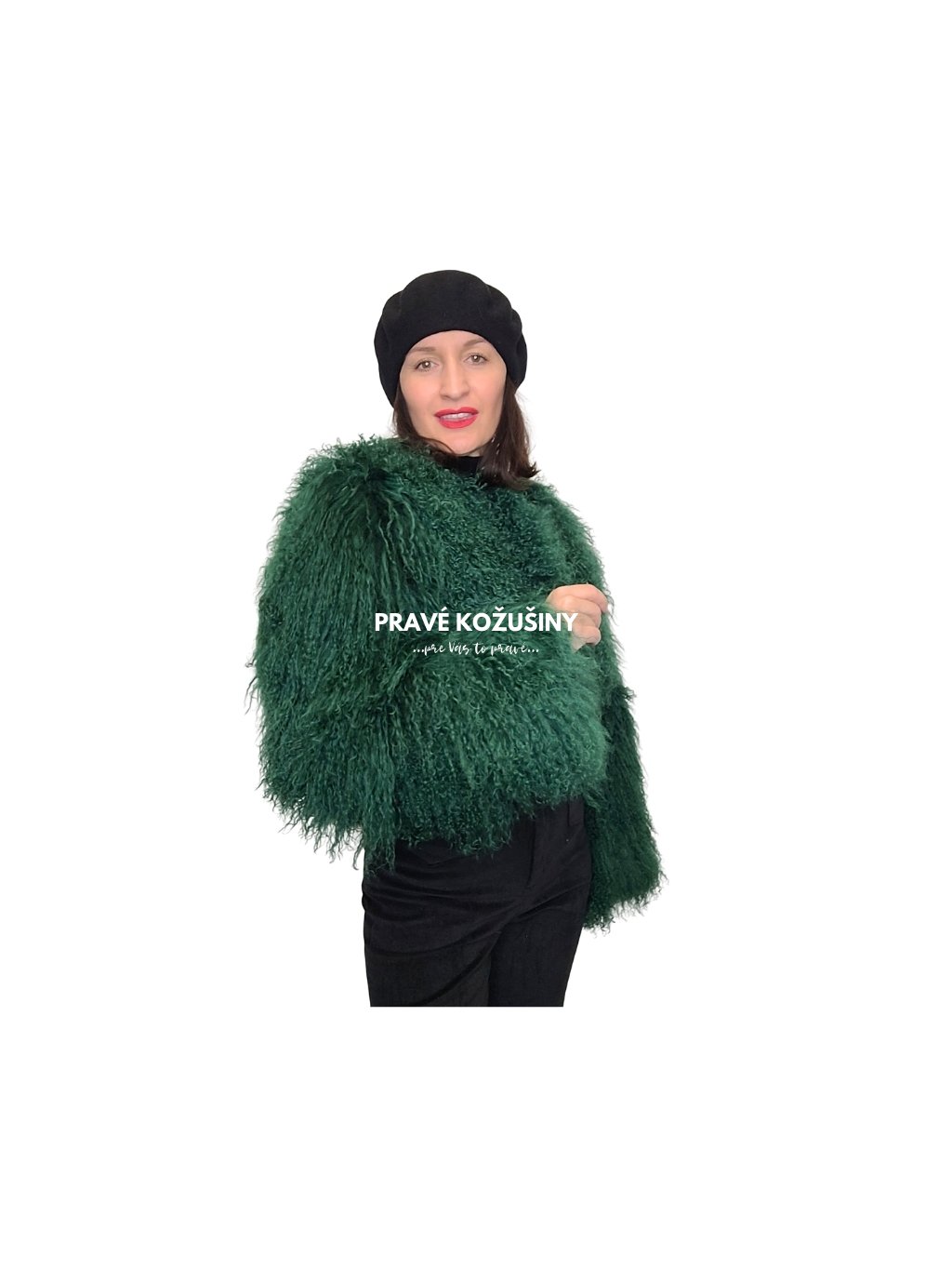 Bolérko - krátky kabátik je vyhotovené z pravej kožušiny mongolskej ovce.
