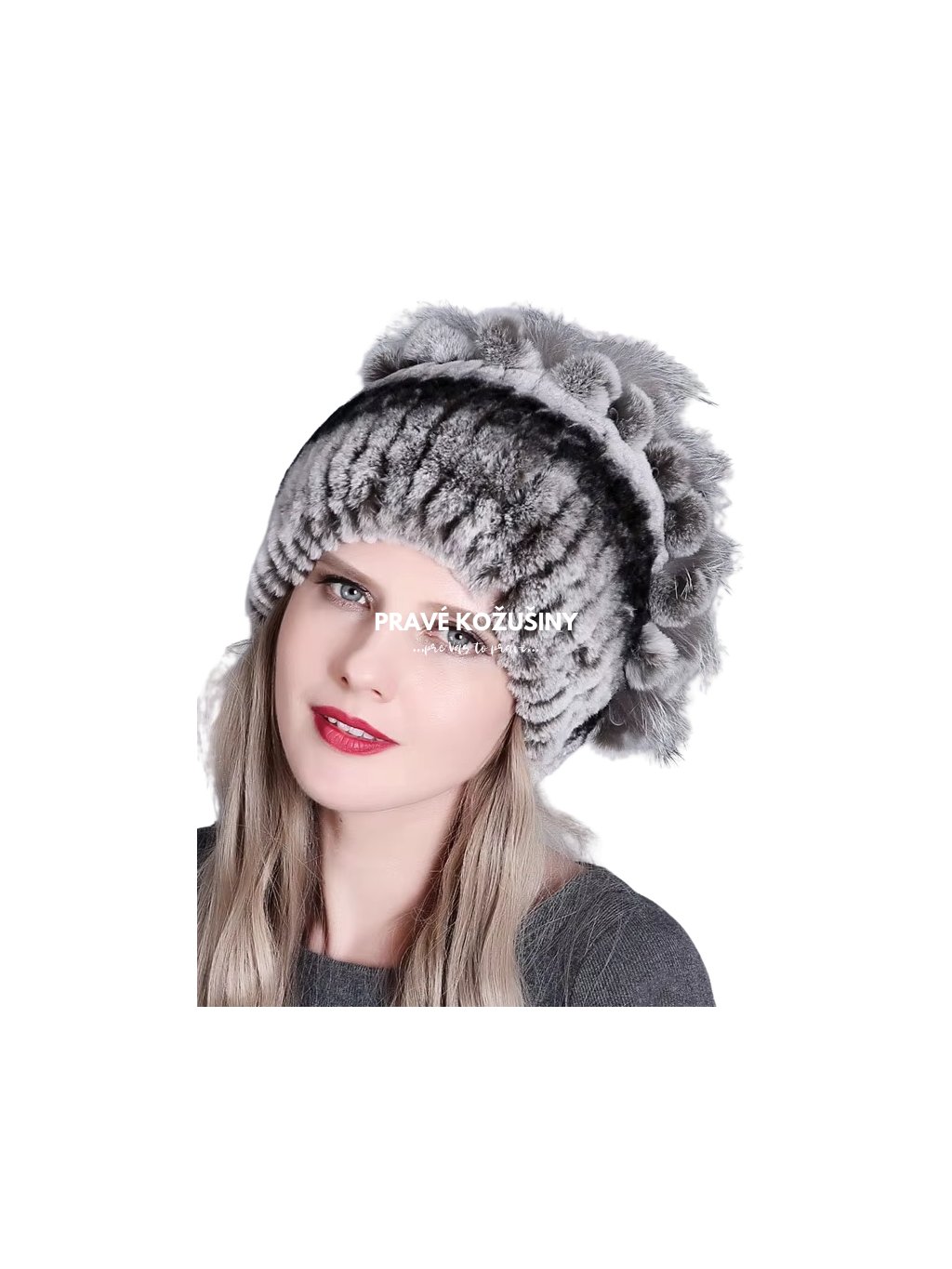 SKLADOM! Dámska čiapka z králika s aplikáciou na boku, C98