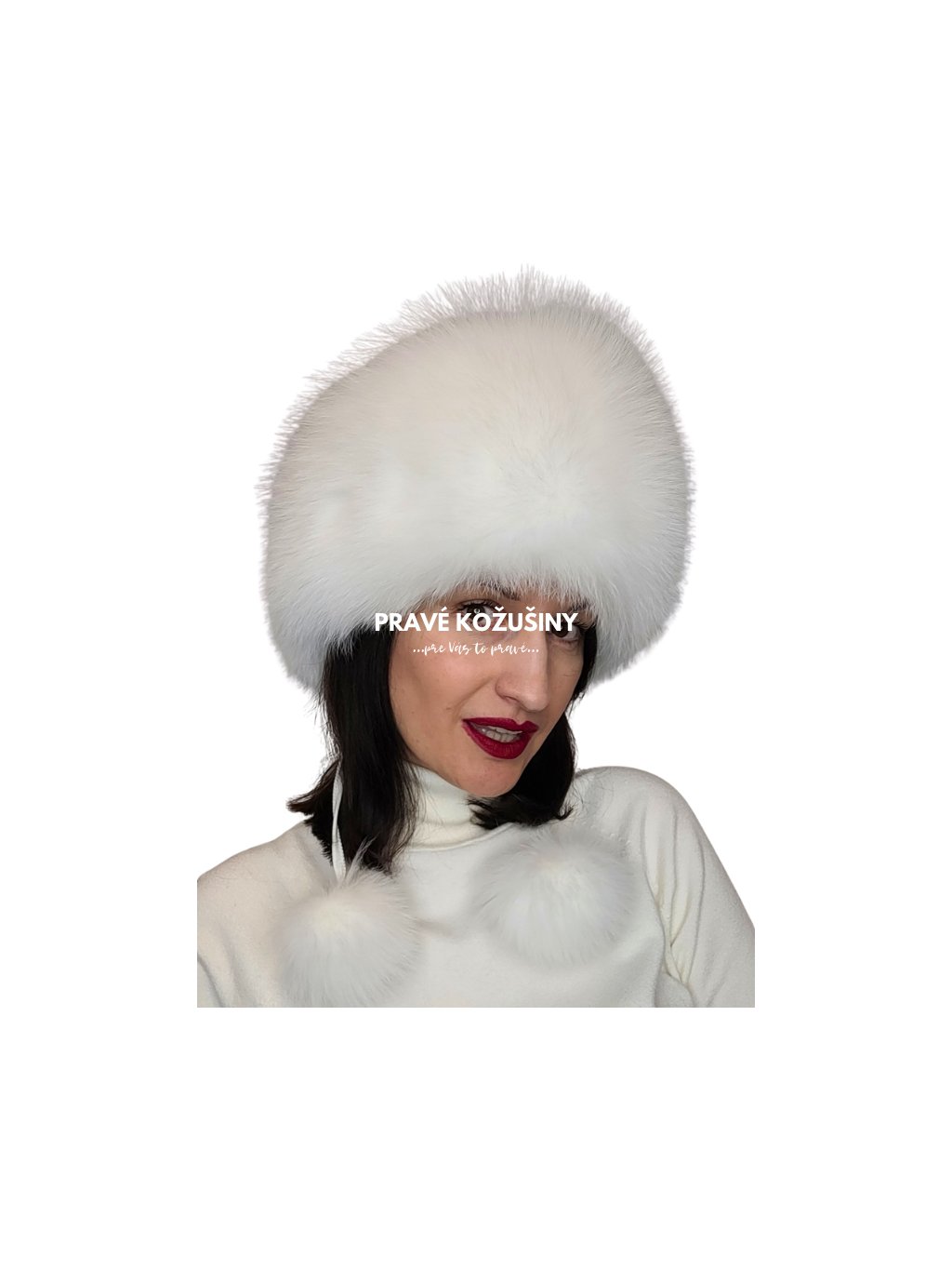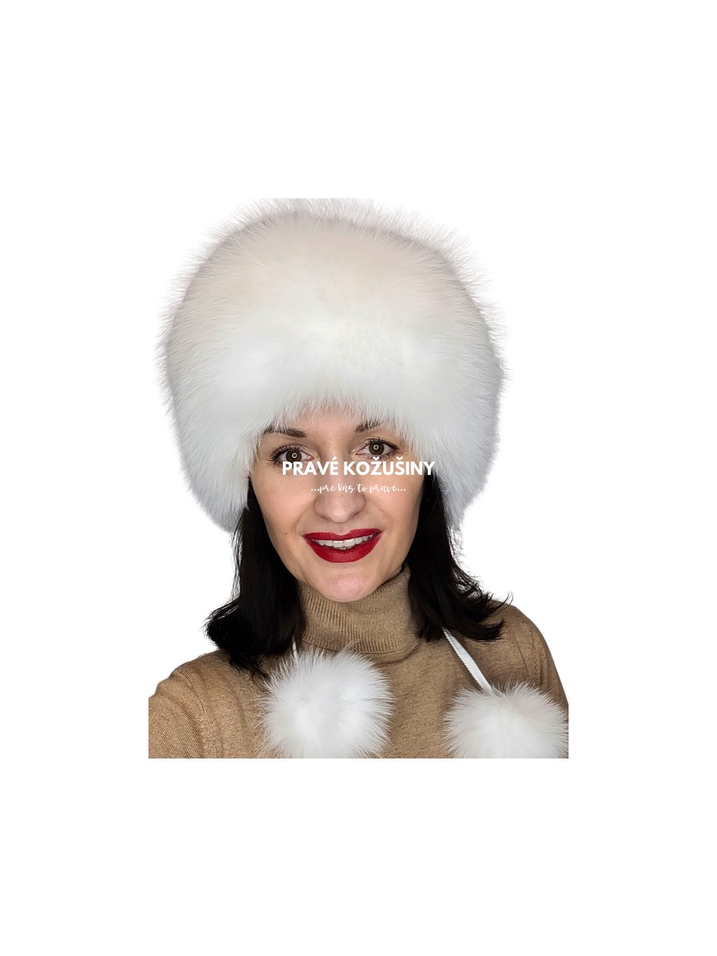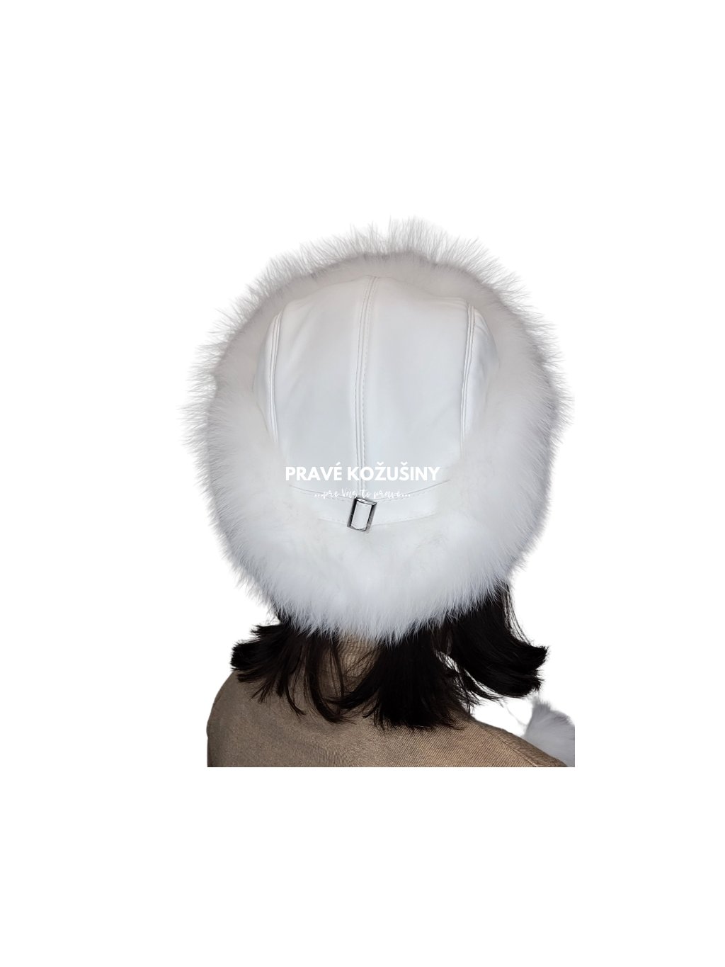SKLADOM snehobiela - Kožená čiapka s líškou, C7S11