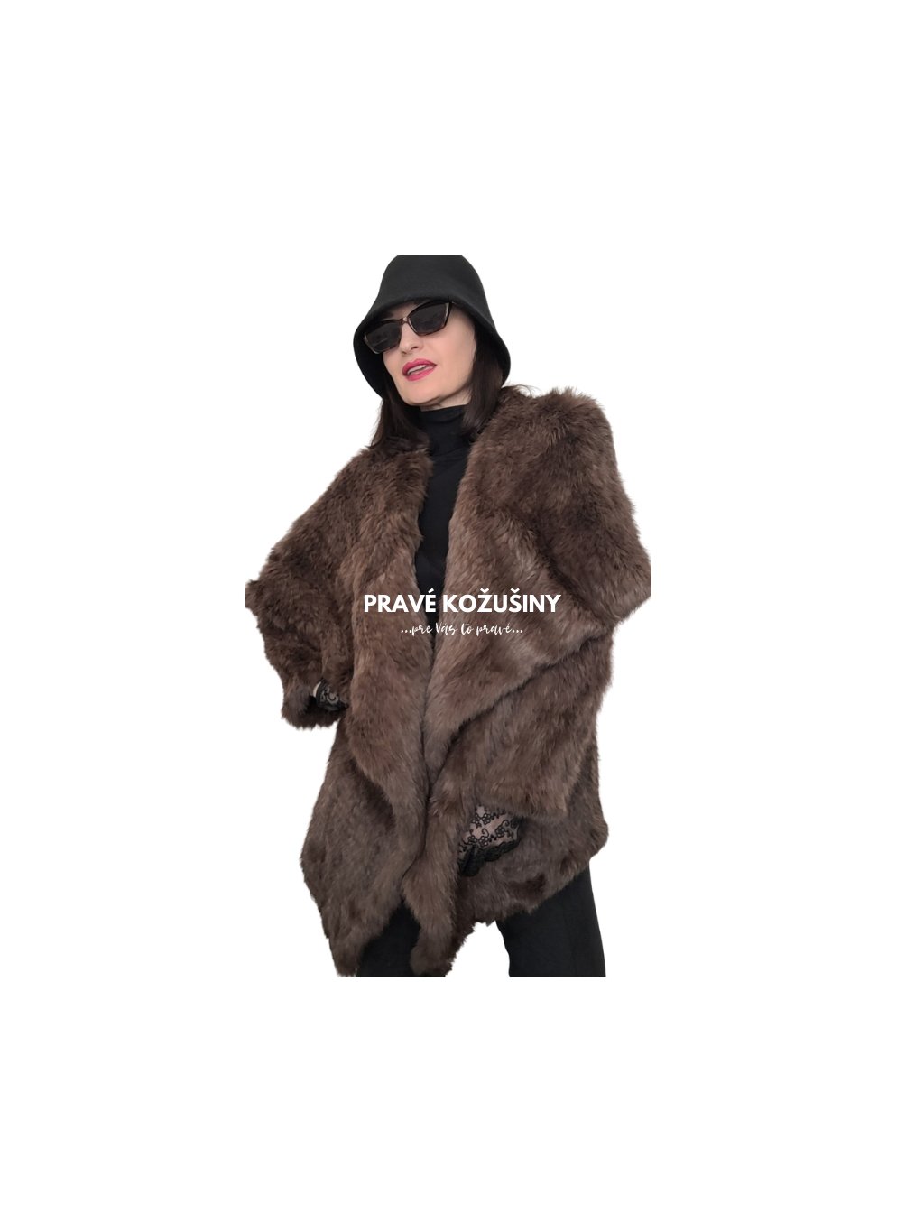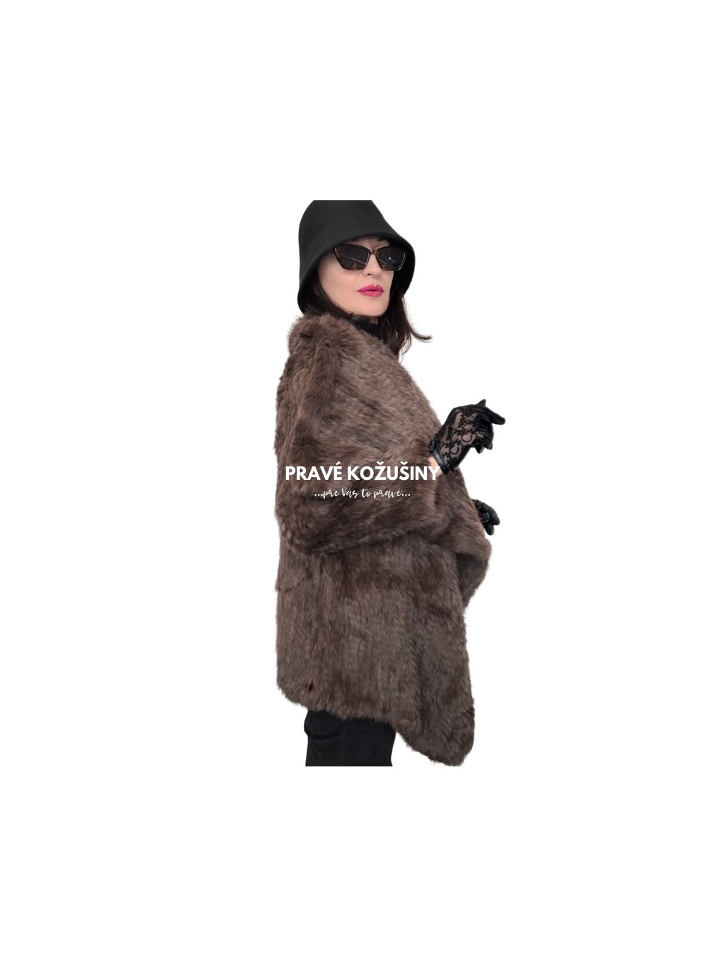 Kardigán z pravého králika, vzadu kratší, predné cípy dlhšie, vo veľmi trendovom voľnom strihu.
