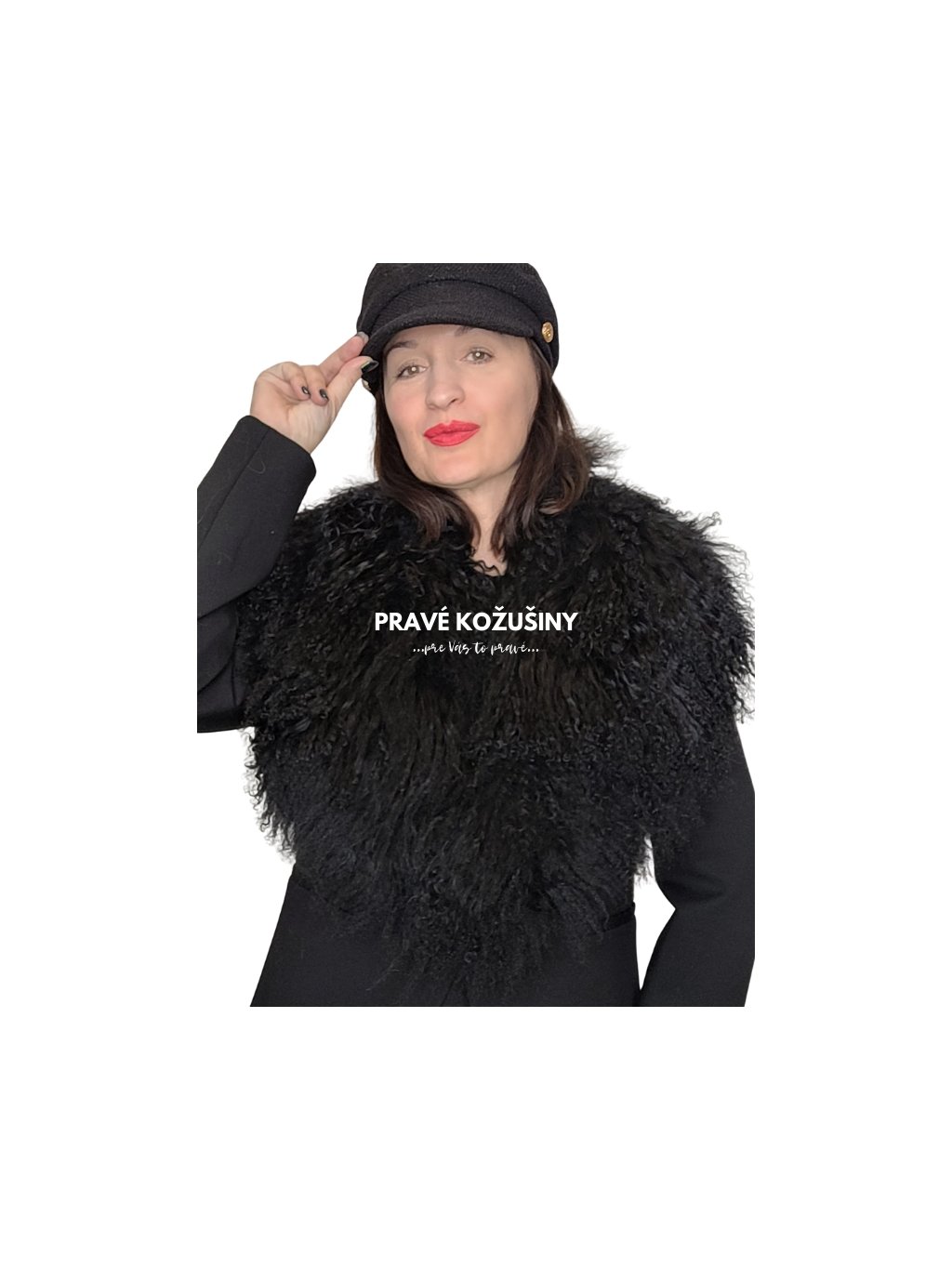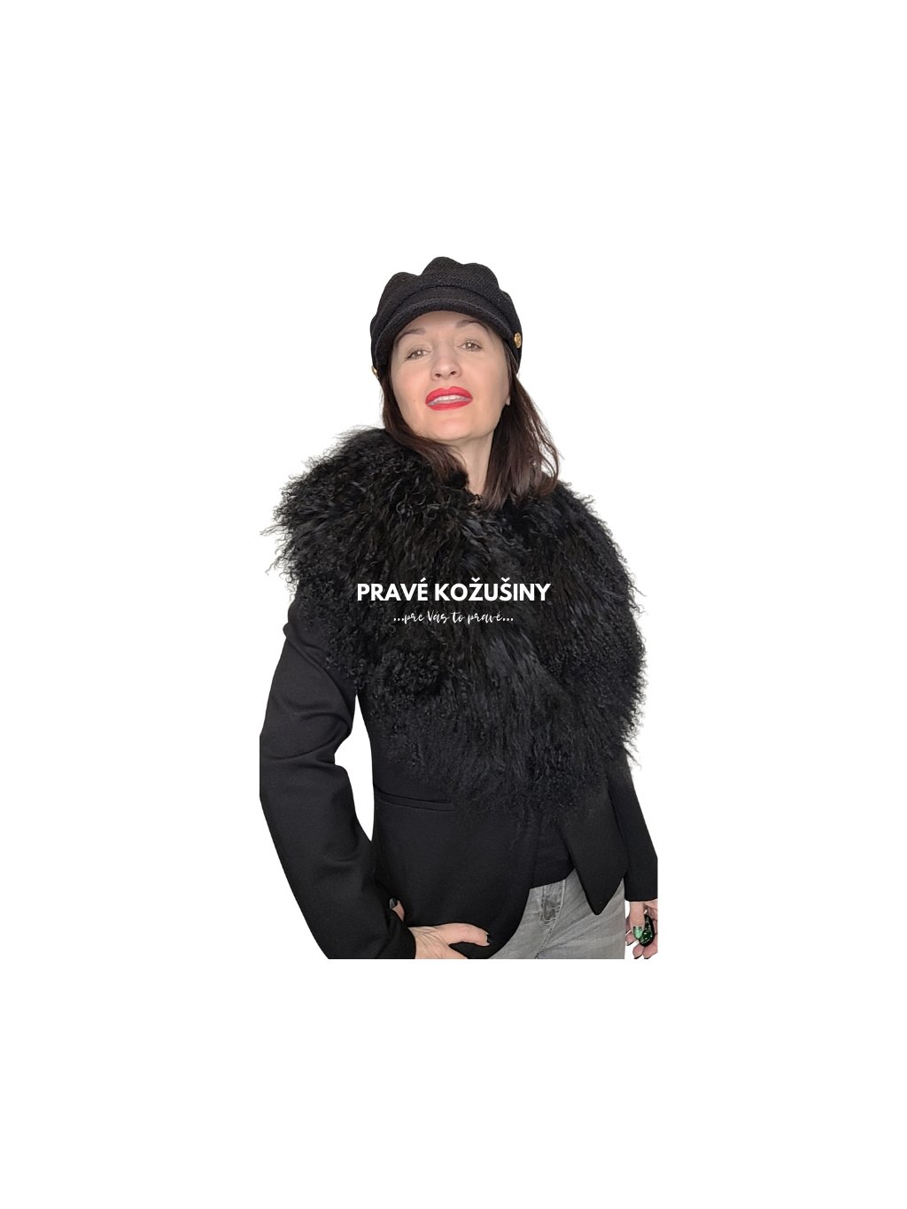 Čierny golier z mongolskej ovce, rôzne dĺžky, G35