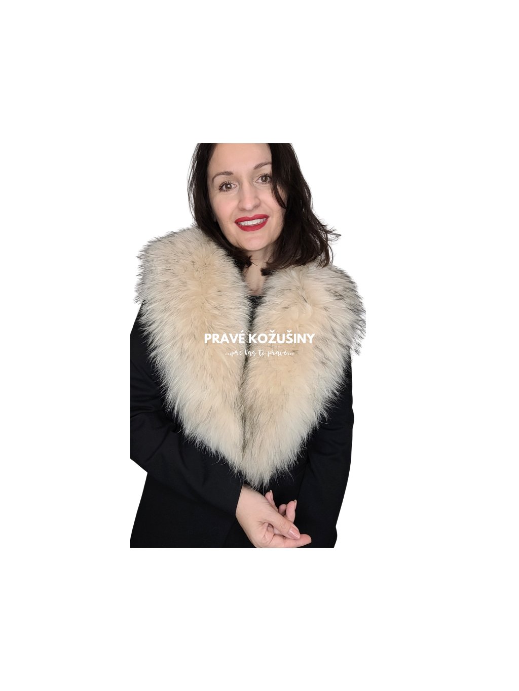 Ihneď k odberu je krásny, bohatý golier z pravého mývala v béžovej farbe s čiernymi špičkami vlasu.