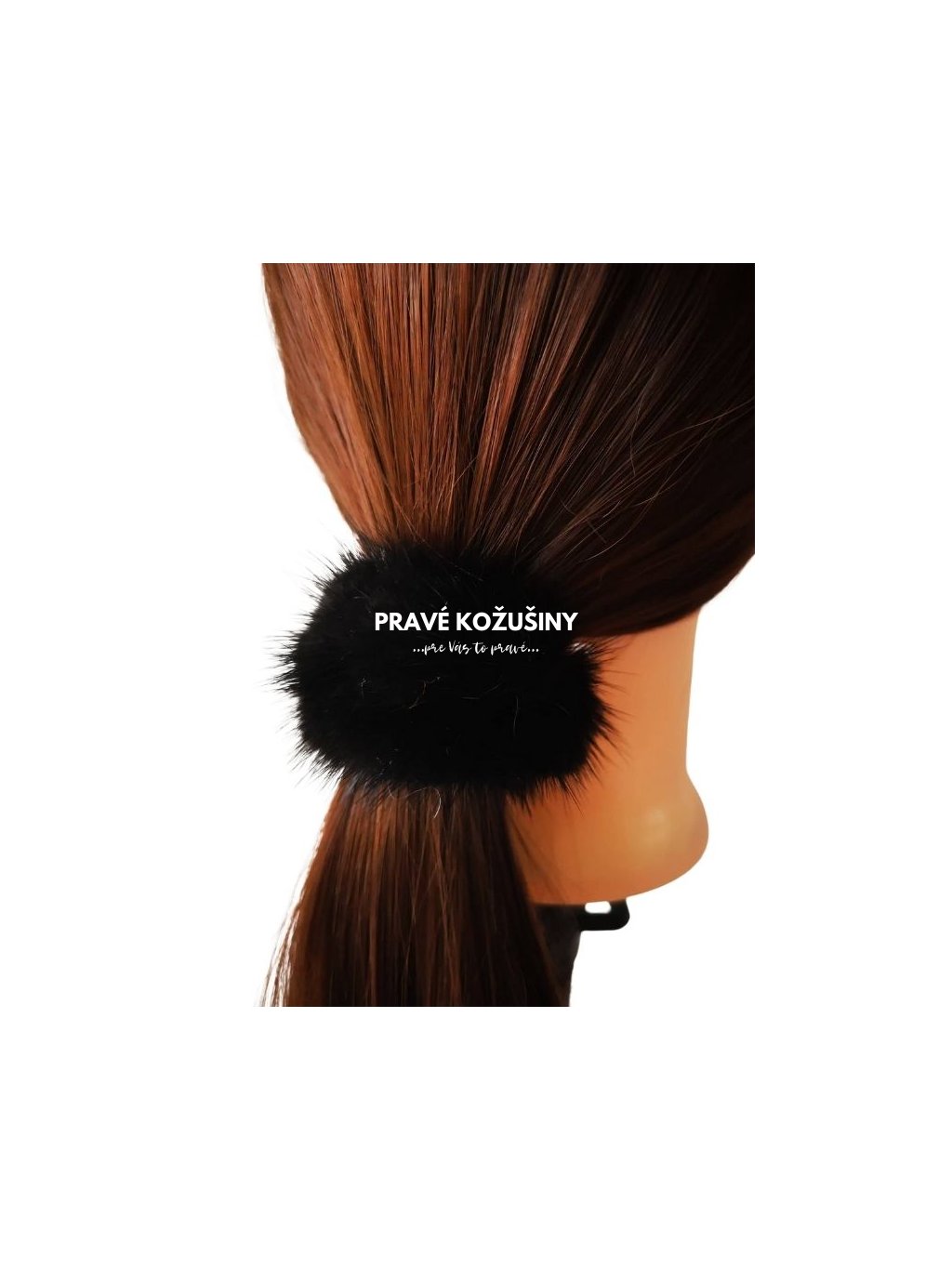 Menšia gumička do vlasov s pravou norkou, čierna, G04