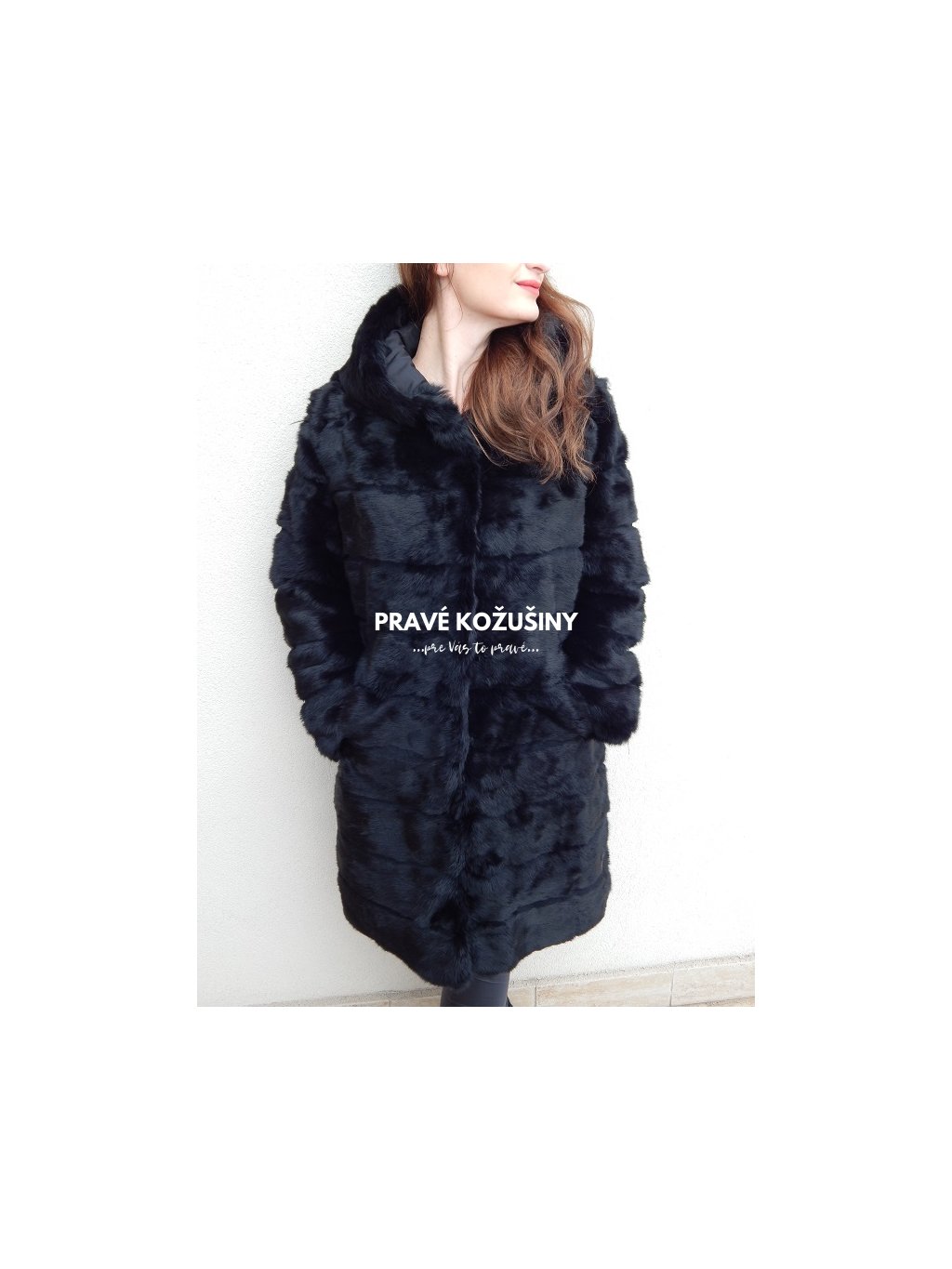Kabát z králika s kapucňou, rôzne dĺžky, K37
