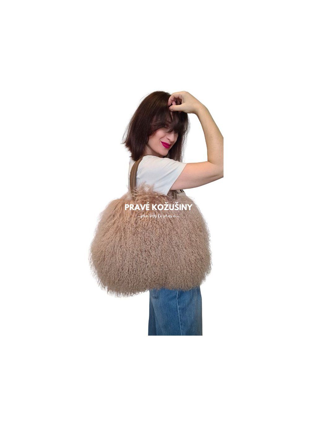 Veľká kabelka s pravou kožušinkou mongolskej ovce ukryje všetky tak potrebné veci!