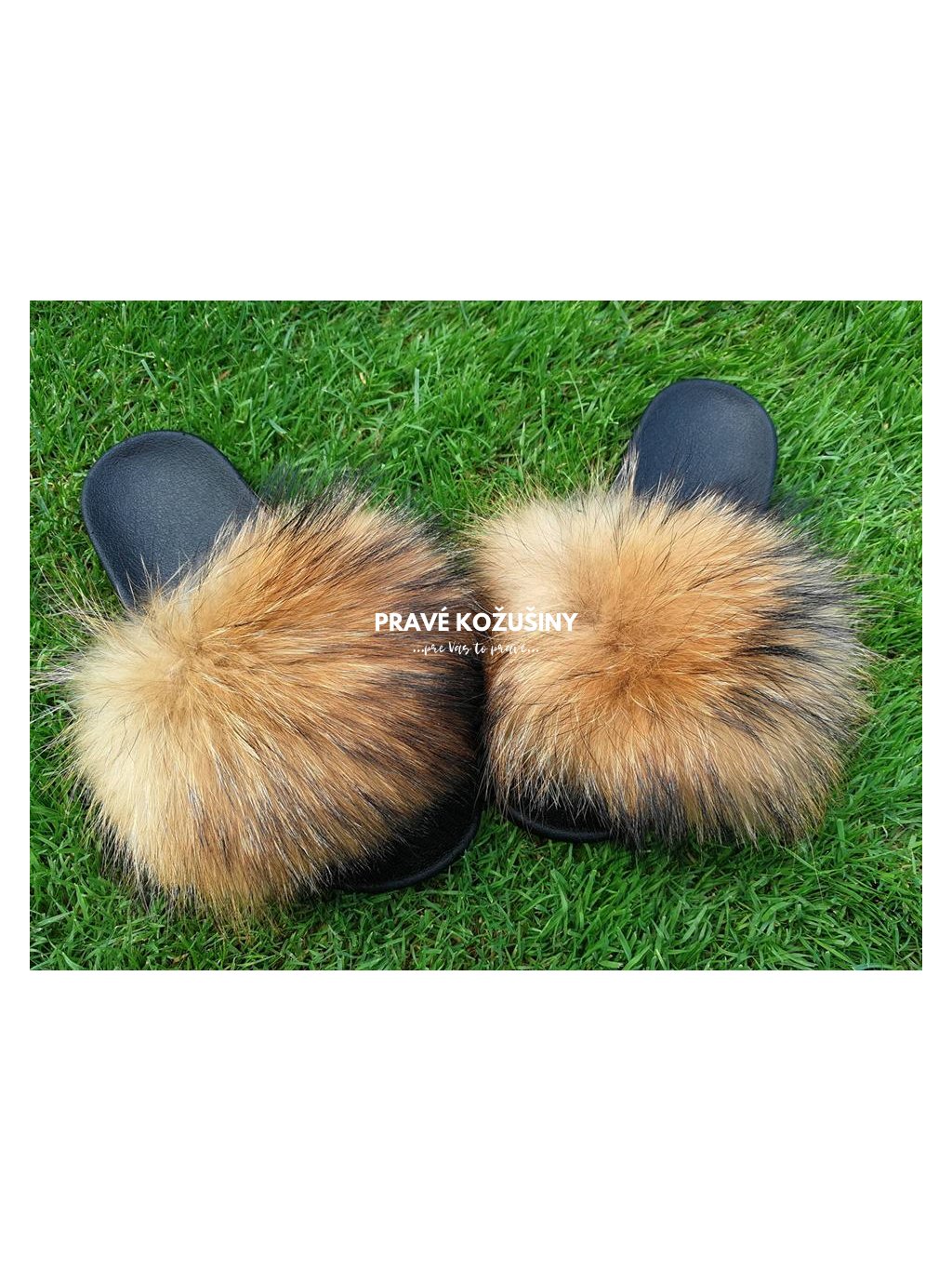 Prírodne hnedé šľapky s pravou kožušinou mývala, OB02