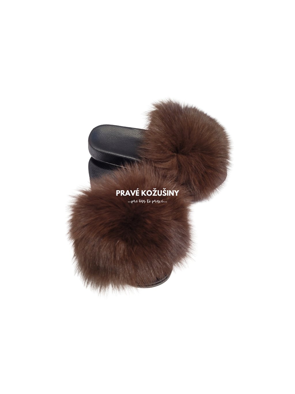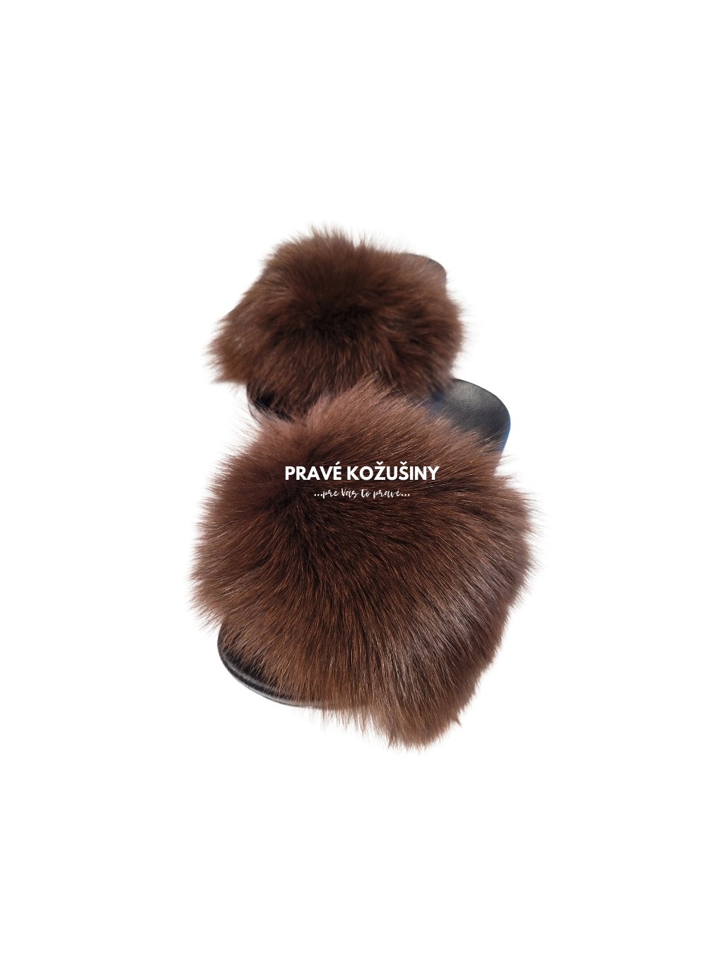 Tmavohnedé šľapky s pravou kožušinou líšky, OB01