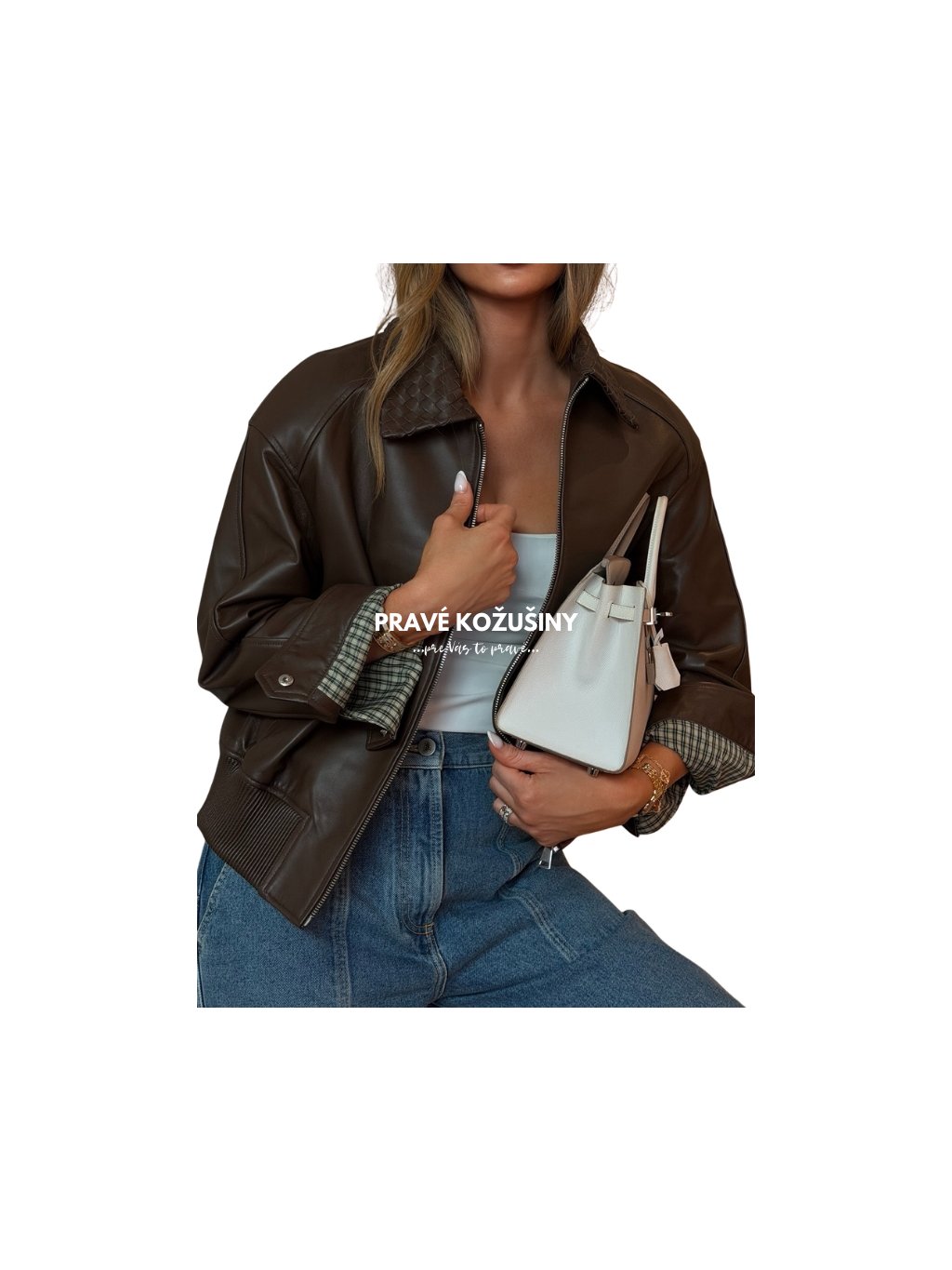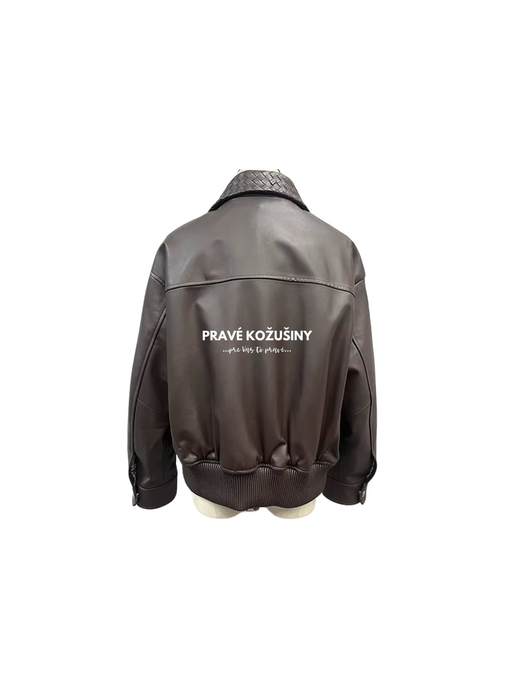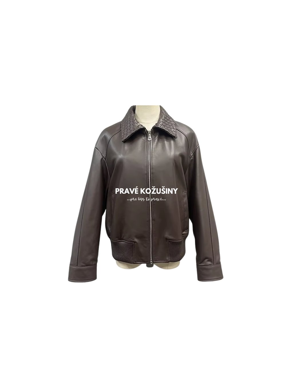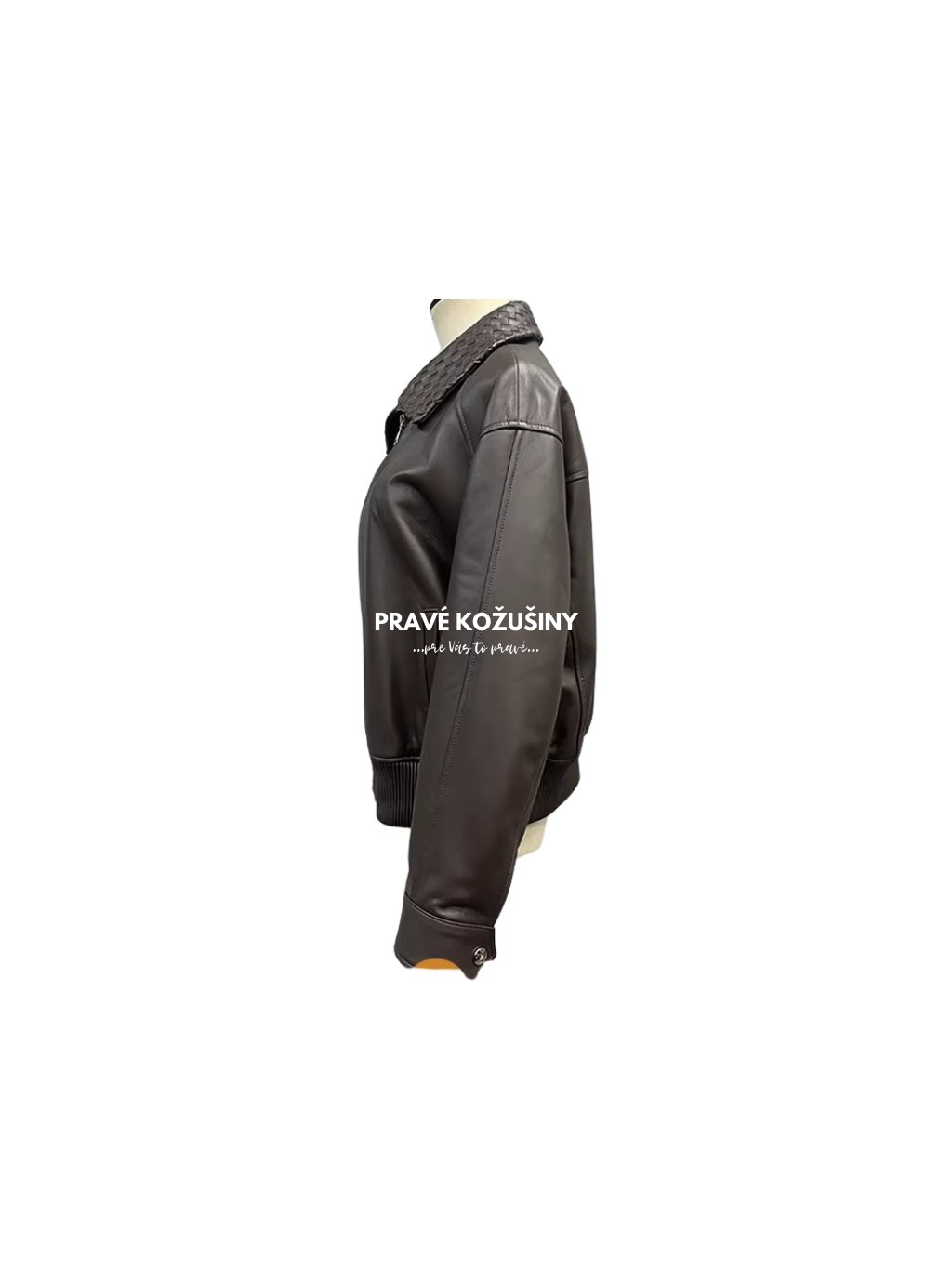 Dámska kožená bombérka s golierom alá Bottega Veneta.