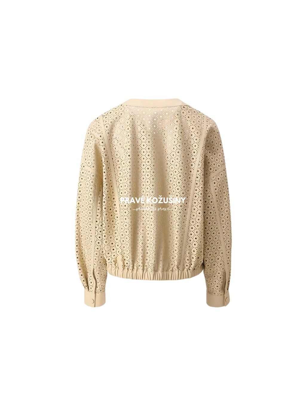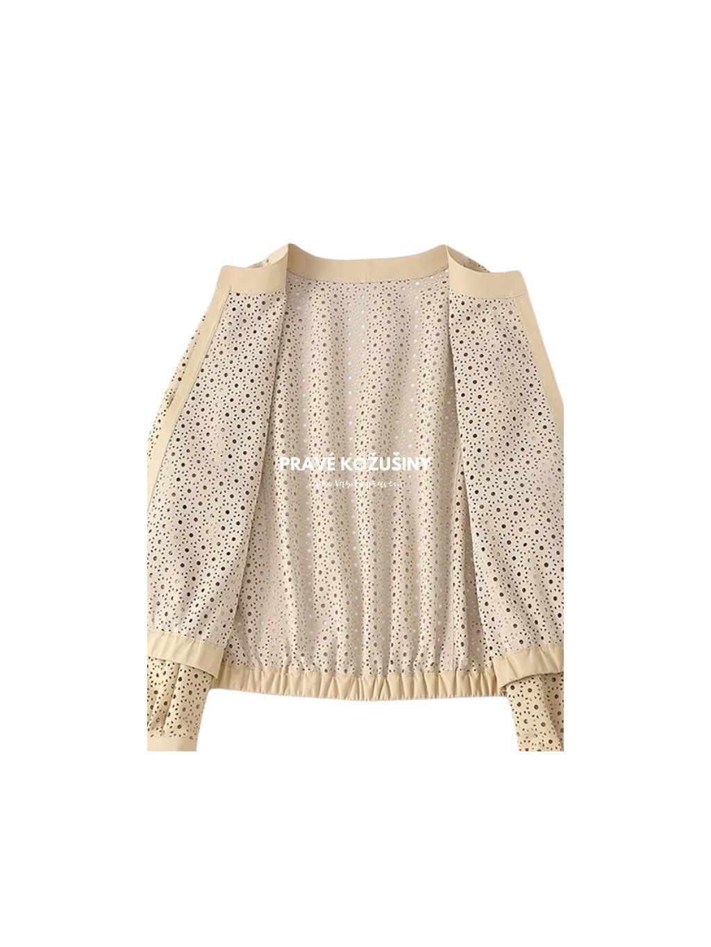 Ľahučká, laserom perforovaná bunda z pravej, mäkkej, jahňacej kože.