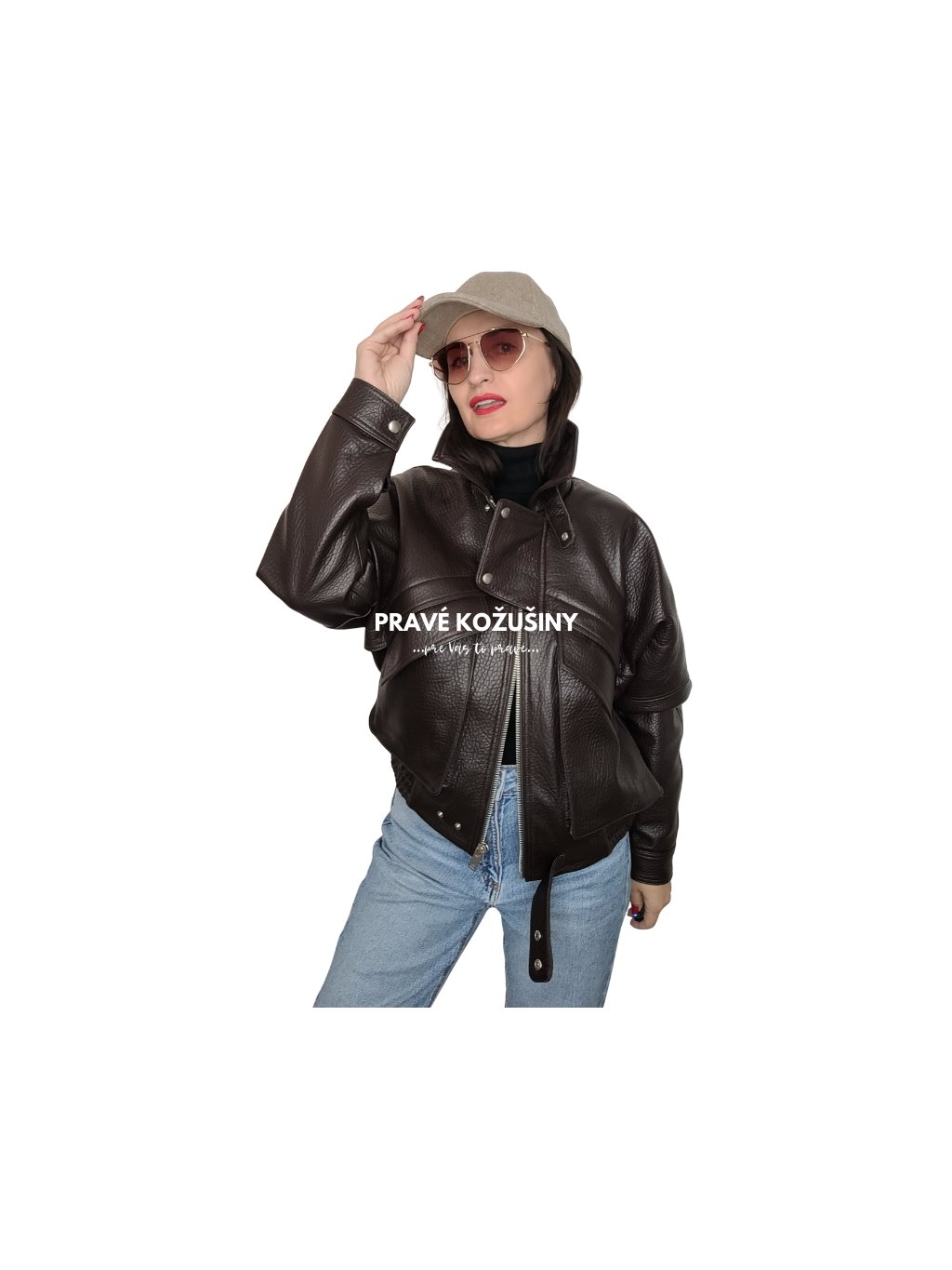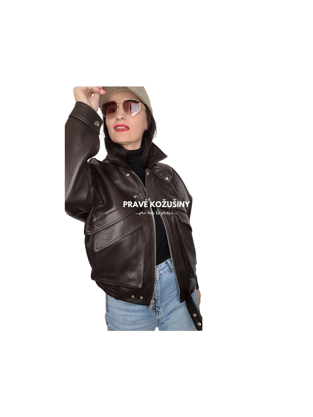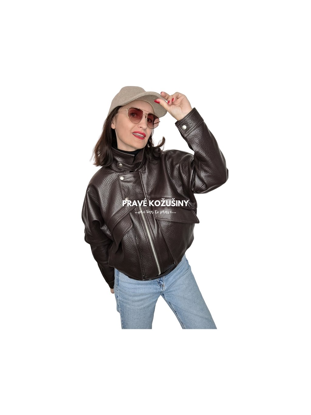 SKLADOM veľ. M - Čokoládová dámska kožená bunda, K267