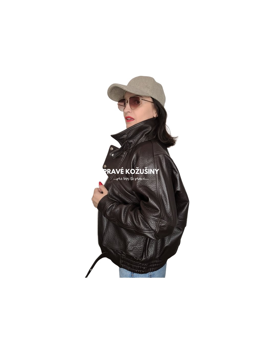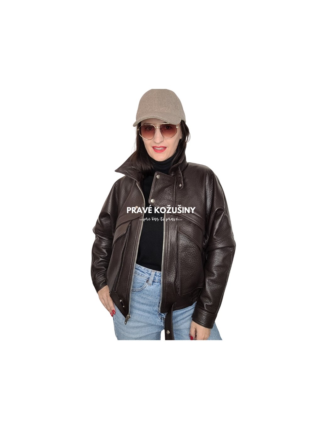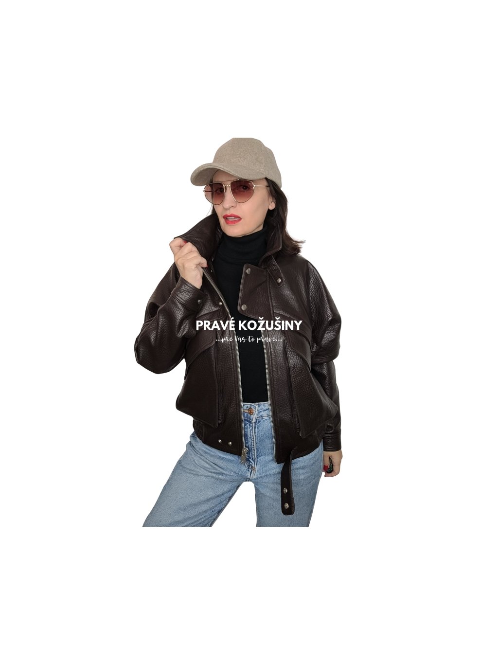 SKLADOM veľ. M - Čokoládová dámska kožená bunda, K267