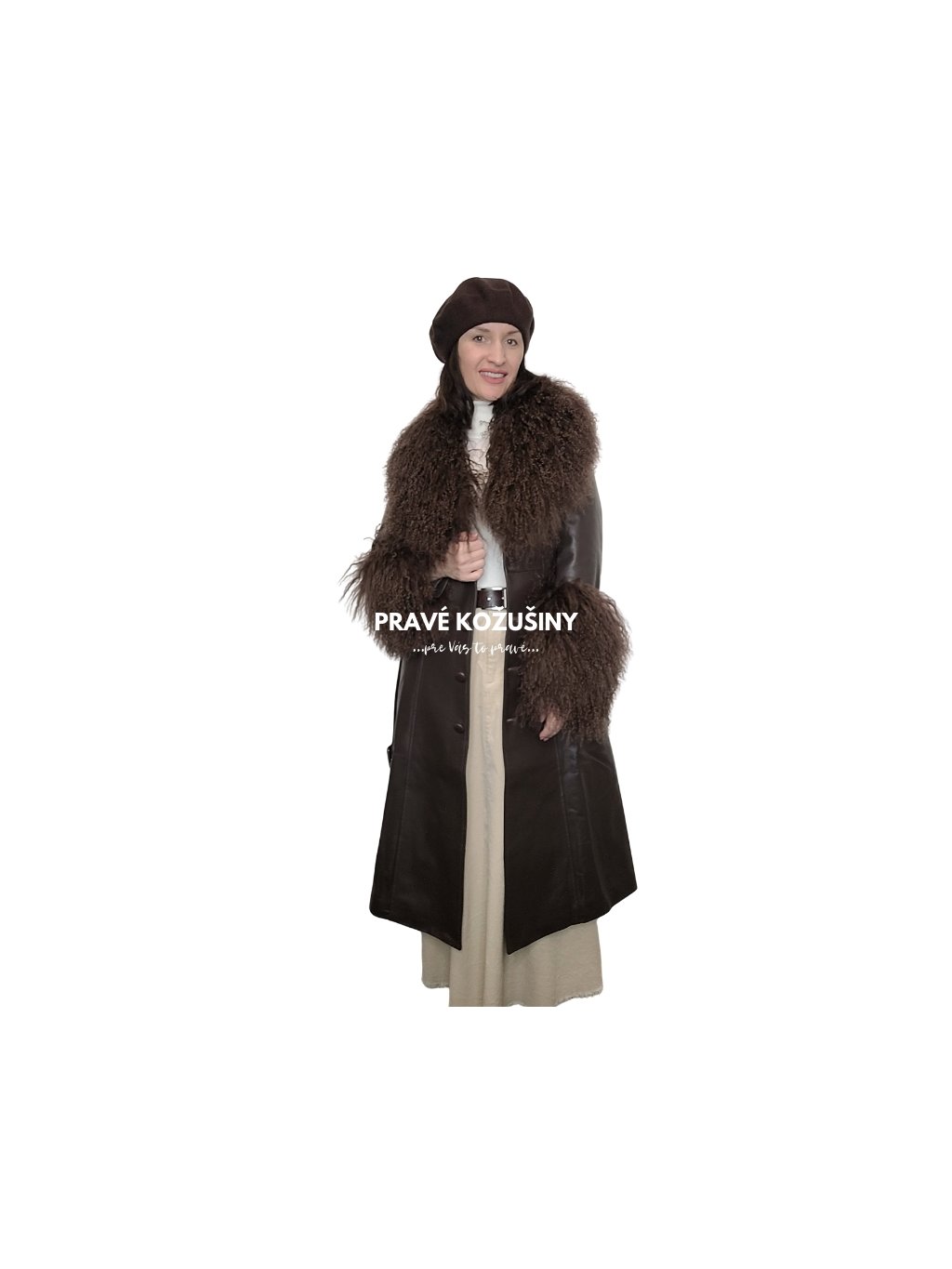 SKLADOM veľ. S - Hnedý kožený trenchcoat s mongolskou ovcou, K312