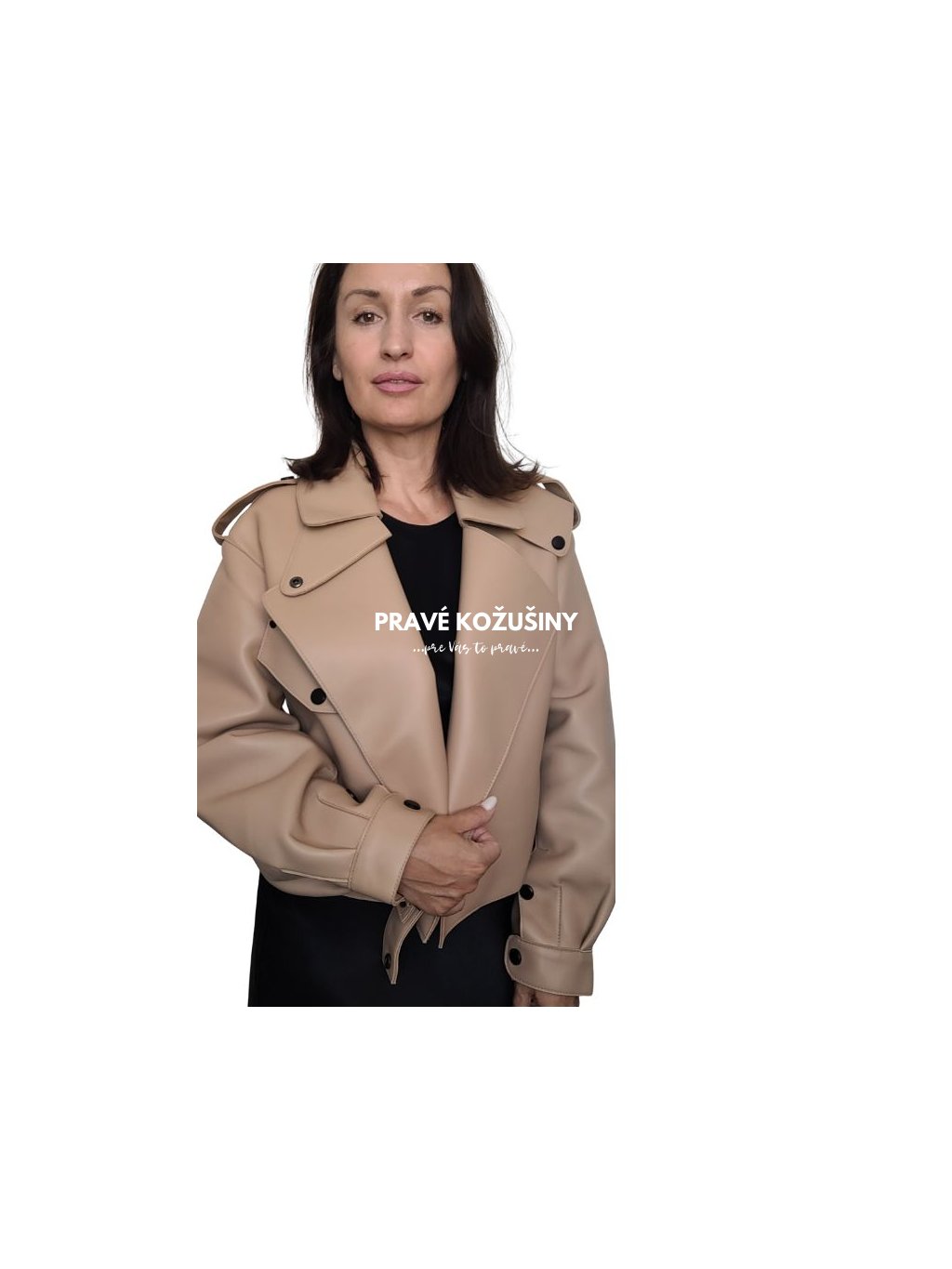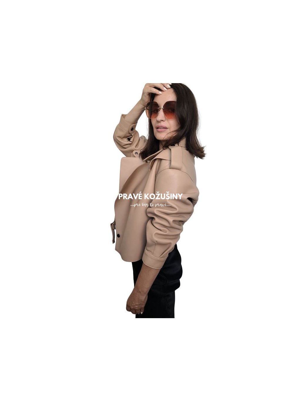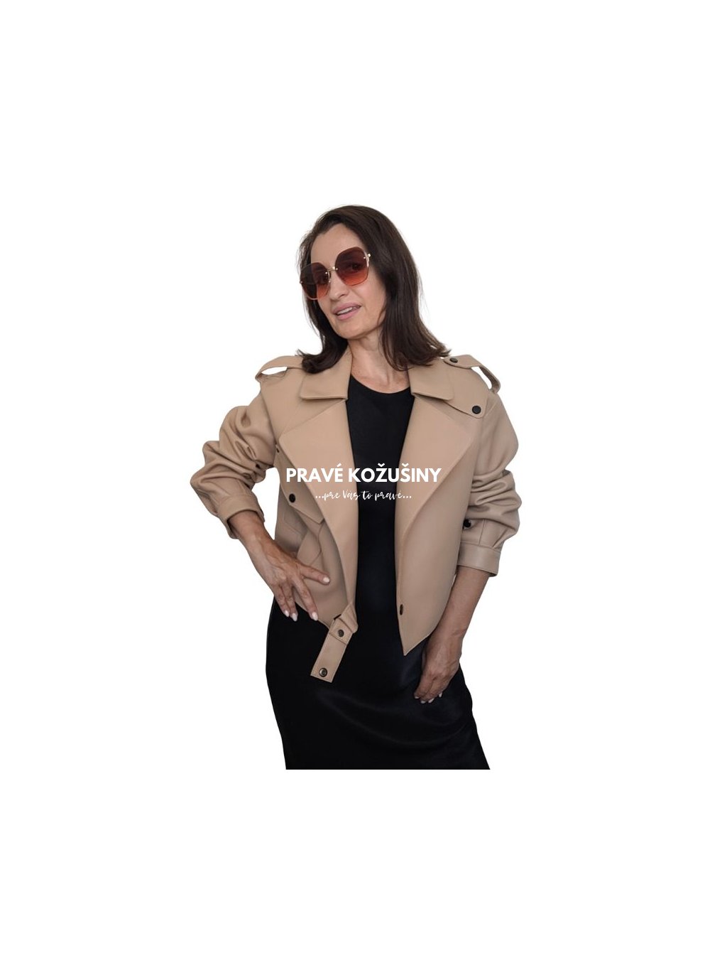 SKLADOM veľ. XL - Štýlová BEIGE dámska kožená bunda ALORA, K183