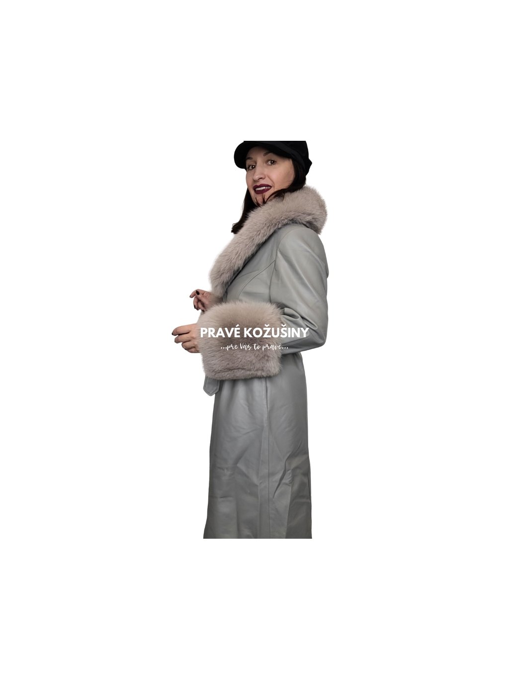 Golier a vysoké manžety sú z pravej líšky a sú odnímateľné.