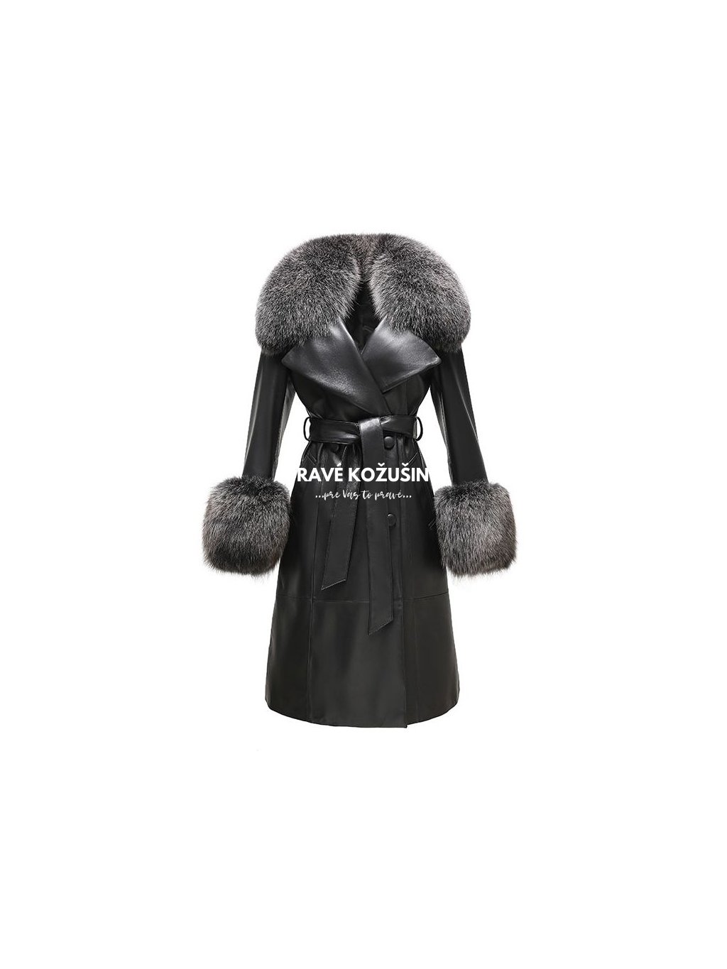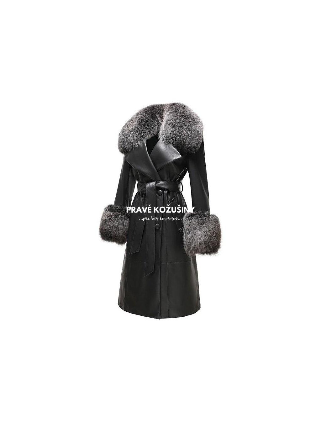 Trenchcoat z pravej kože s pravou líškou, K140