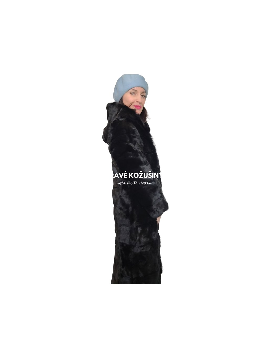 Kabát z králika s kapucňou, rôzne dĺžky, K37