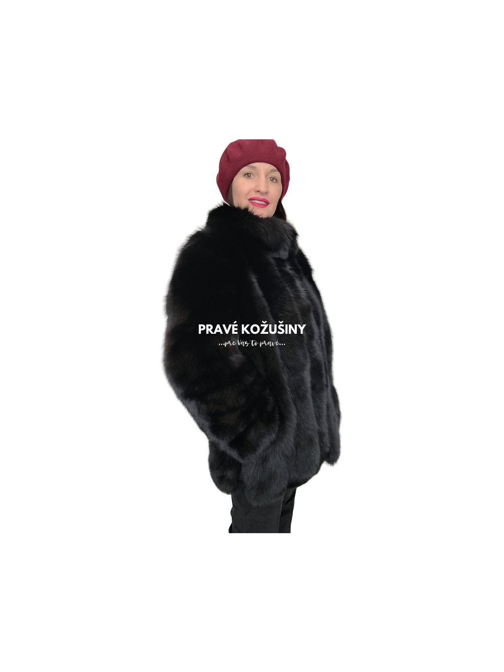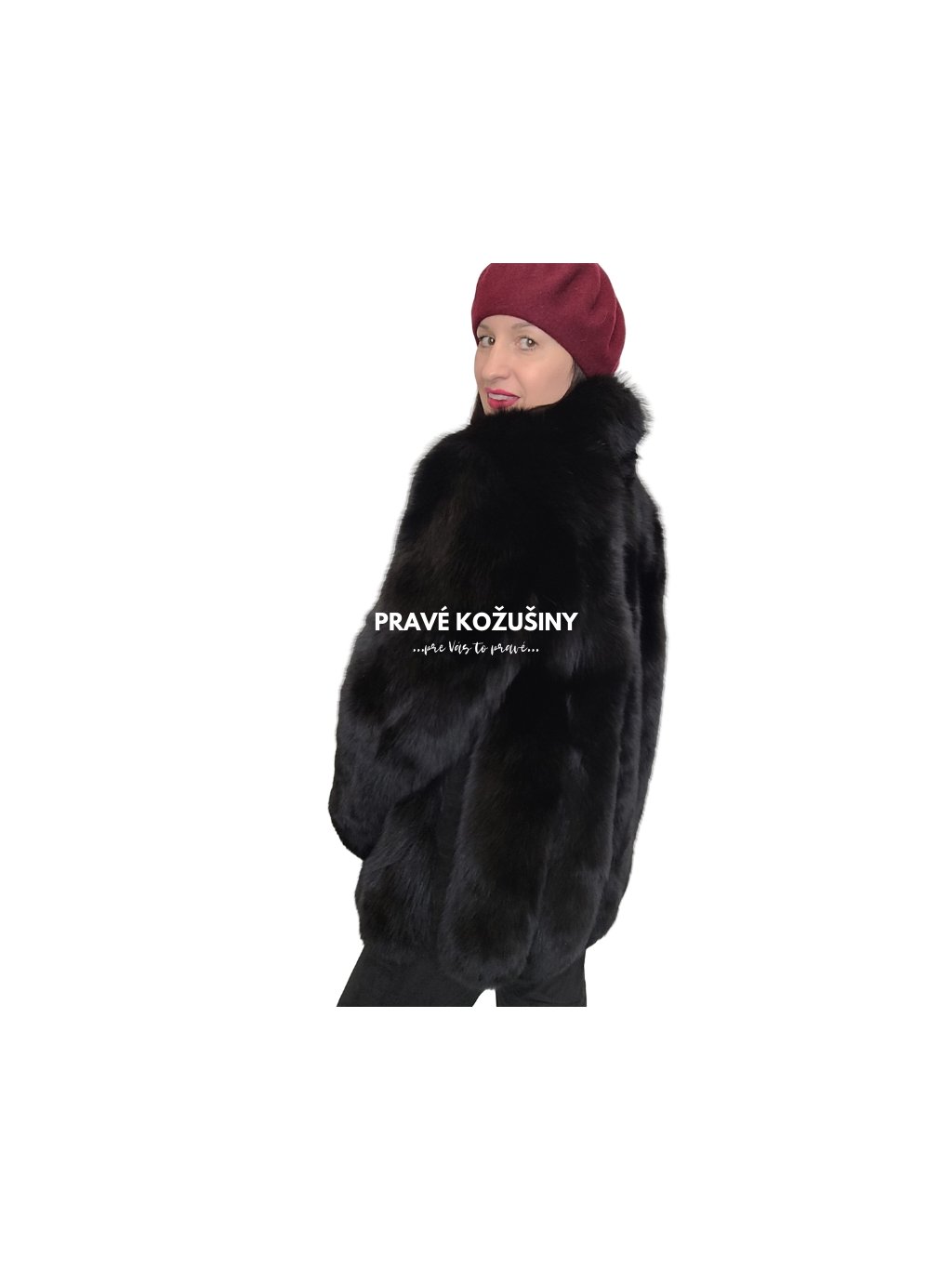 Čierny kožuch ARIA z pravej líšky, stojačik/kapucňa, K59