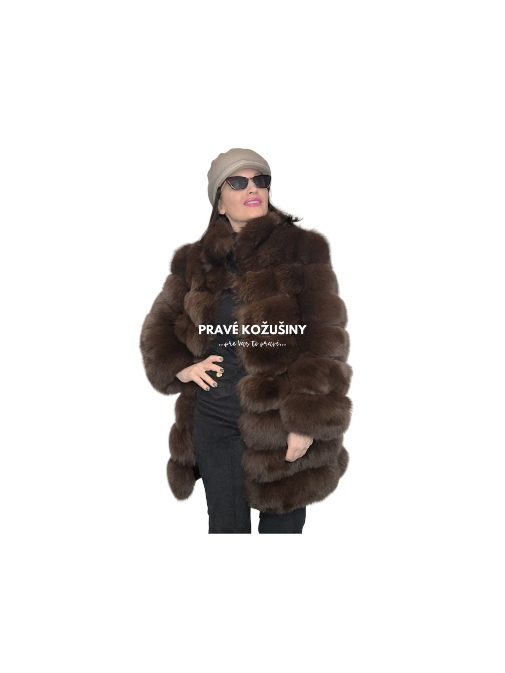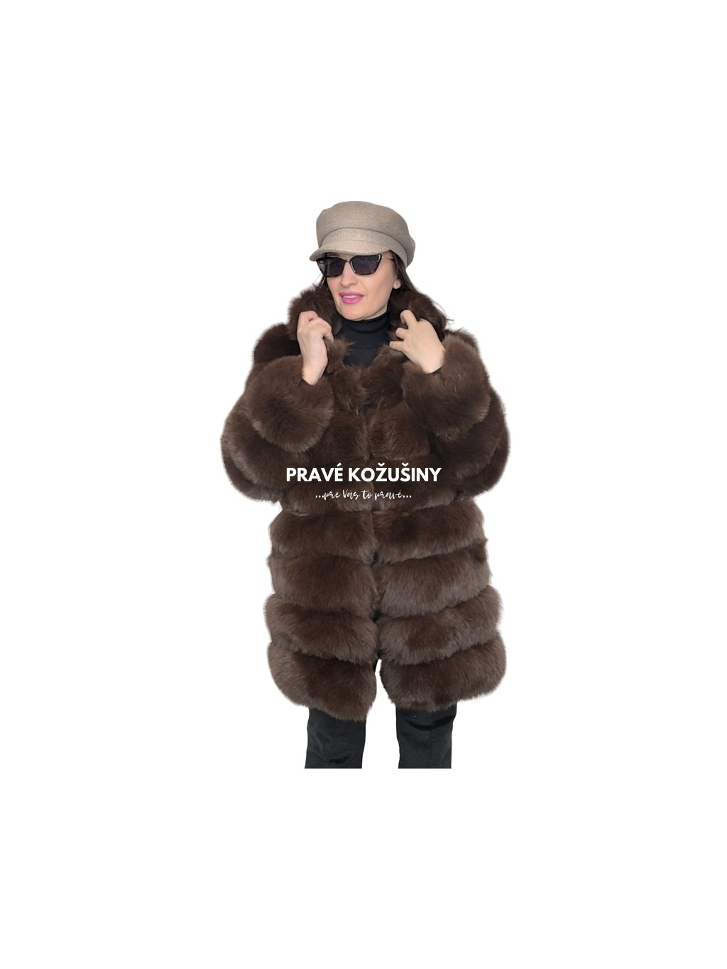 Kávovo hnedý kožuch EMILY z pravej líšky, výstrih/golier/kapucňa, rôzne dĺžky, K11