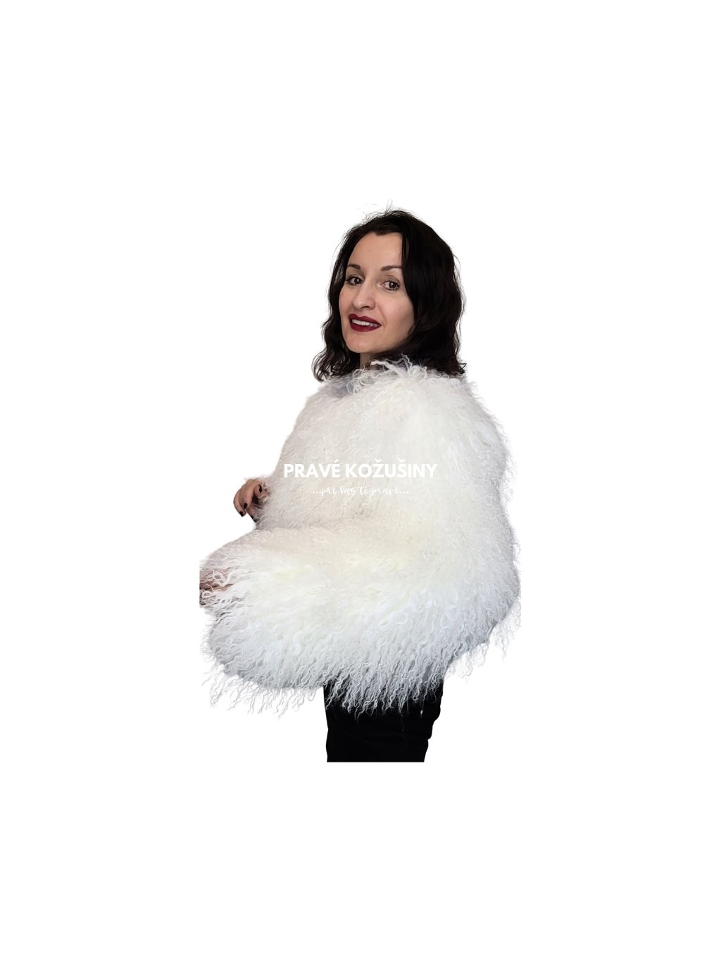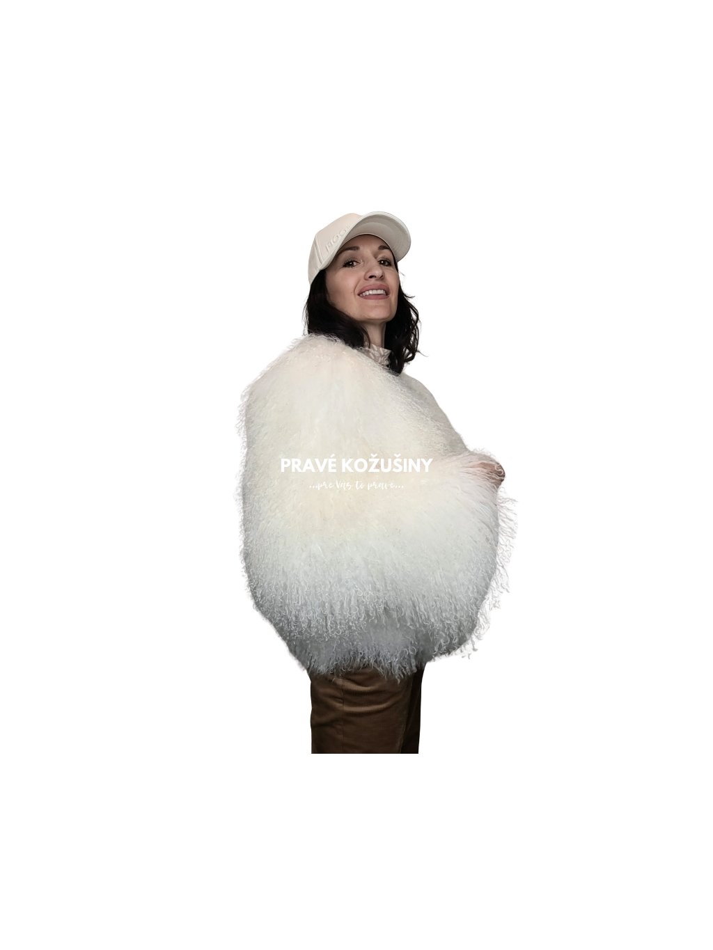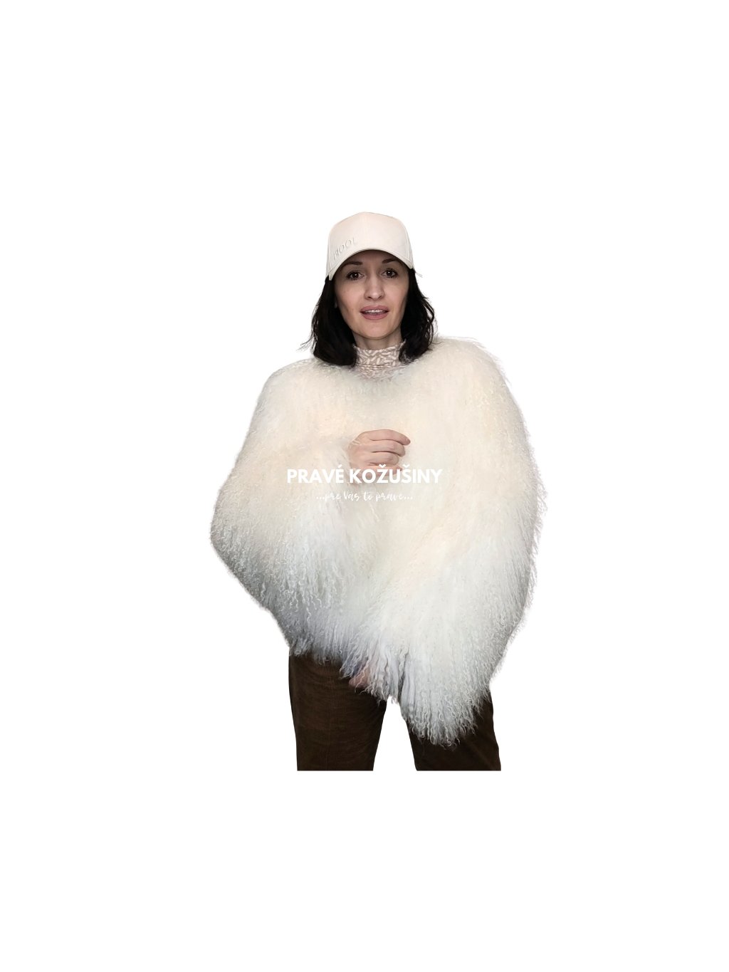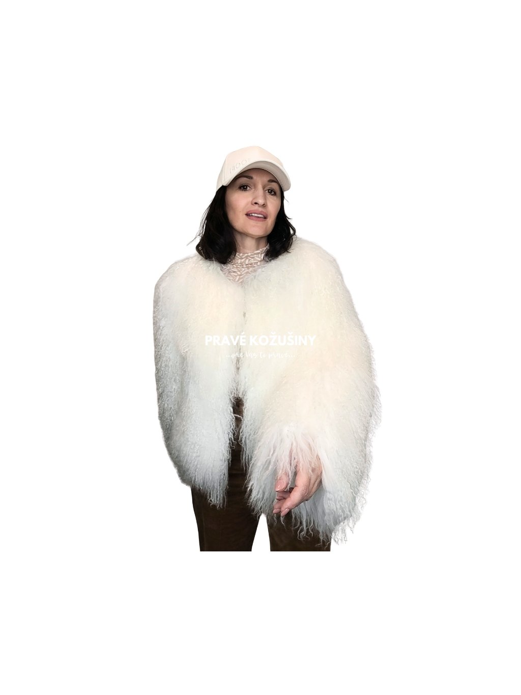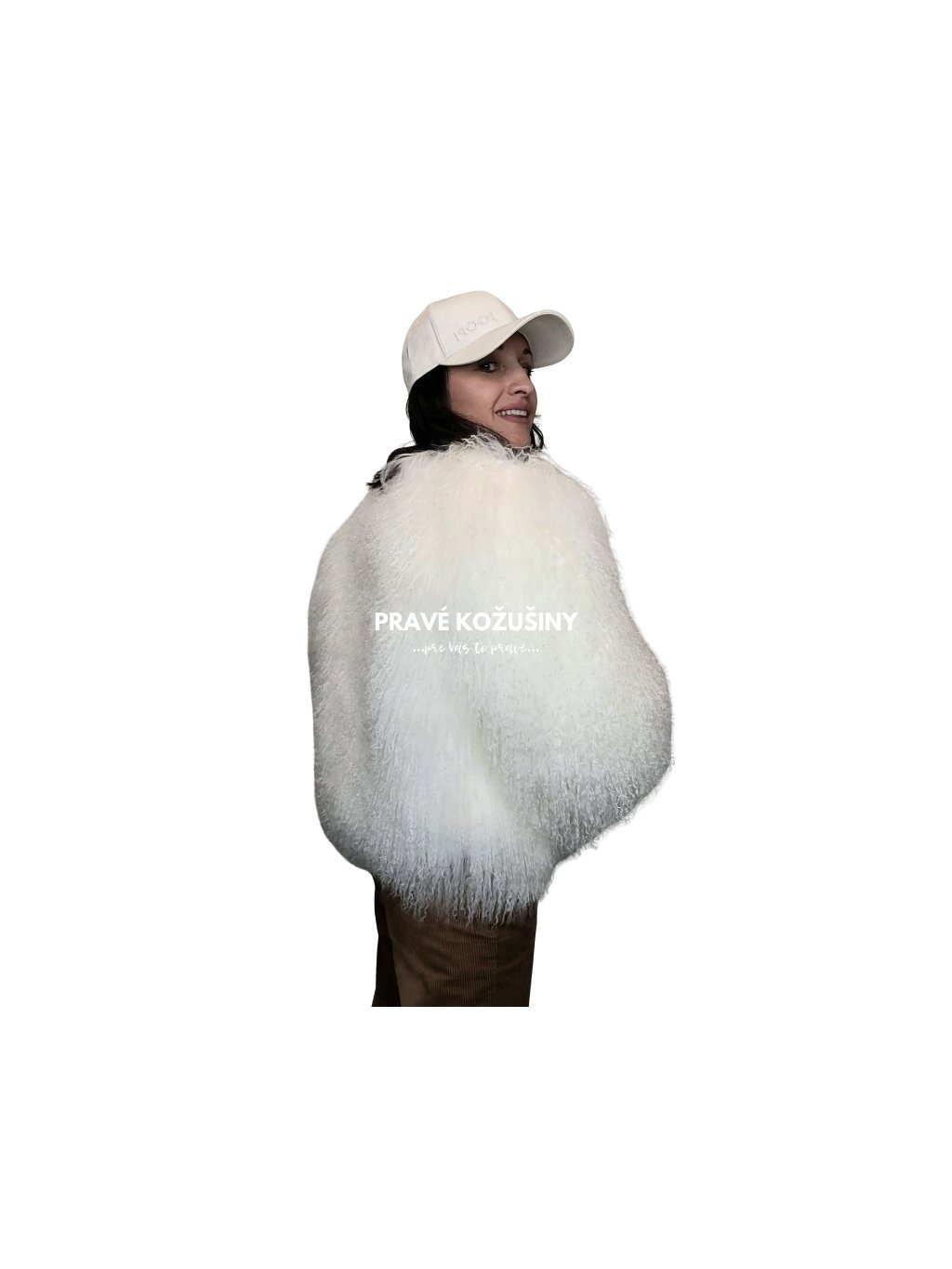 Biely kožuch z mongolskej ovce BEZ GOLIERA, K226