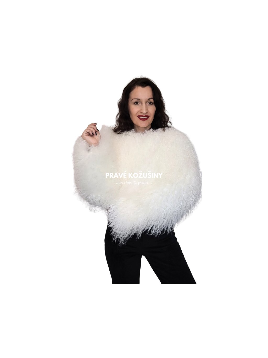 Kožuch je vyhotovený z pravej kožušiny mongolskej ovce.