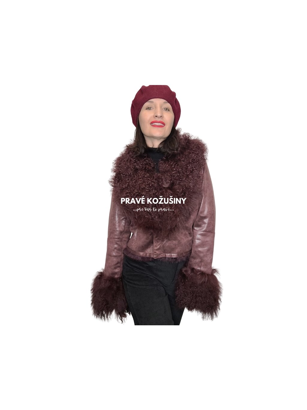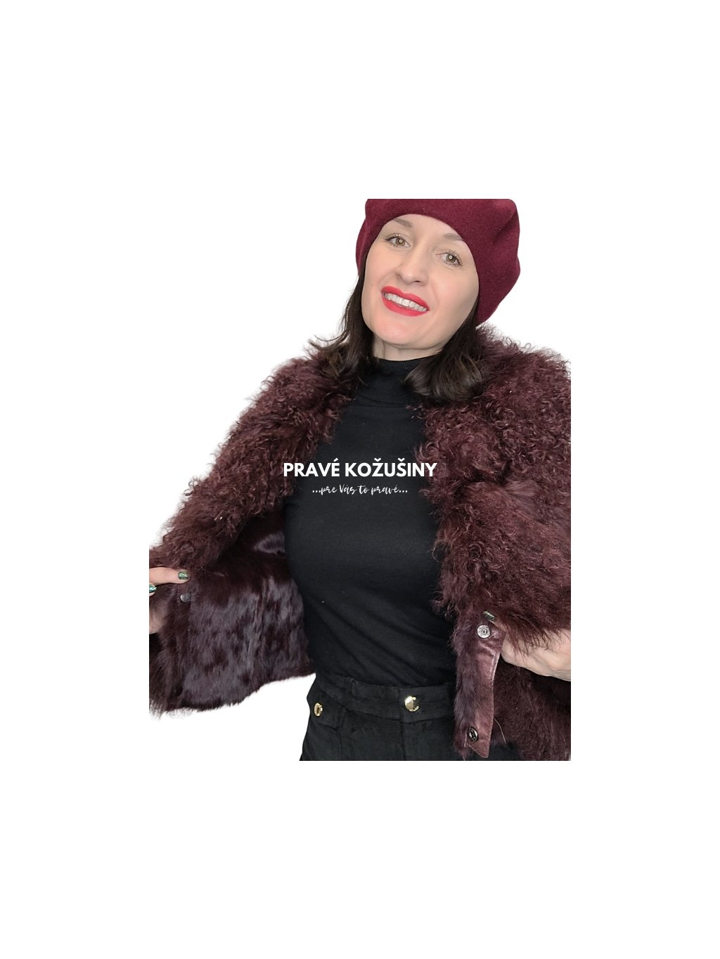 Bordový semišový kožúšok s mongolskou ovcou-zvnútra králik, K309