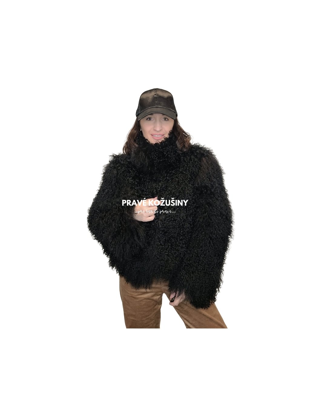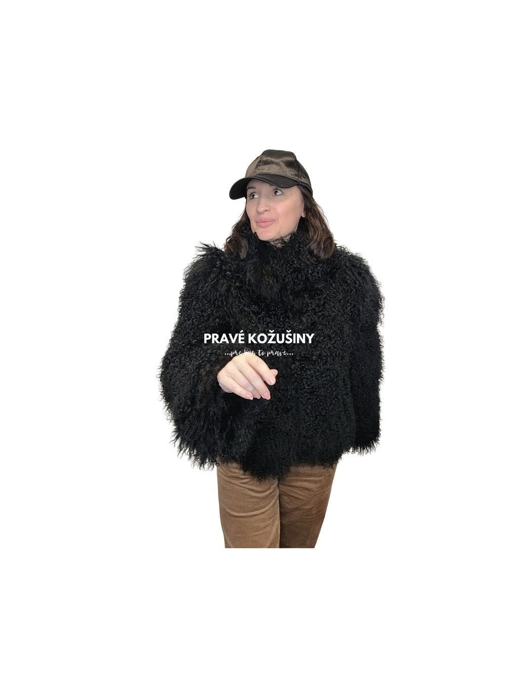 Čierny kožuch z mongolskej ovce SO STOJAČIKOVÝM GOLIEROM, K227
