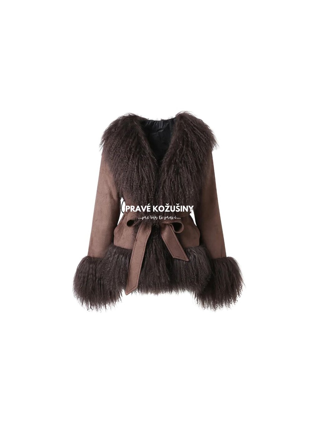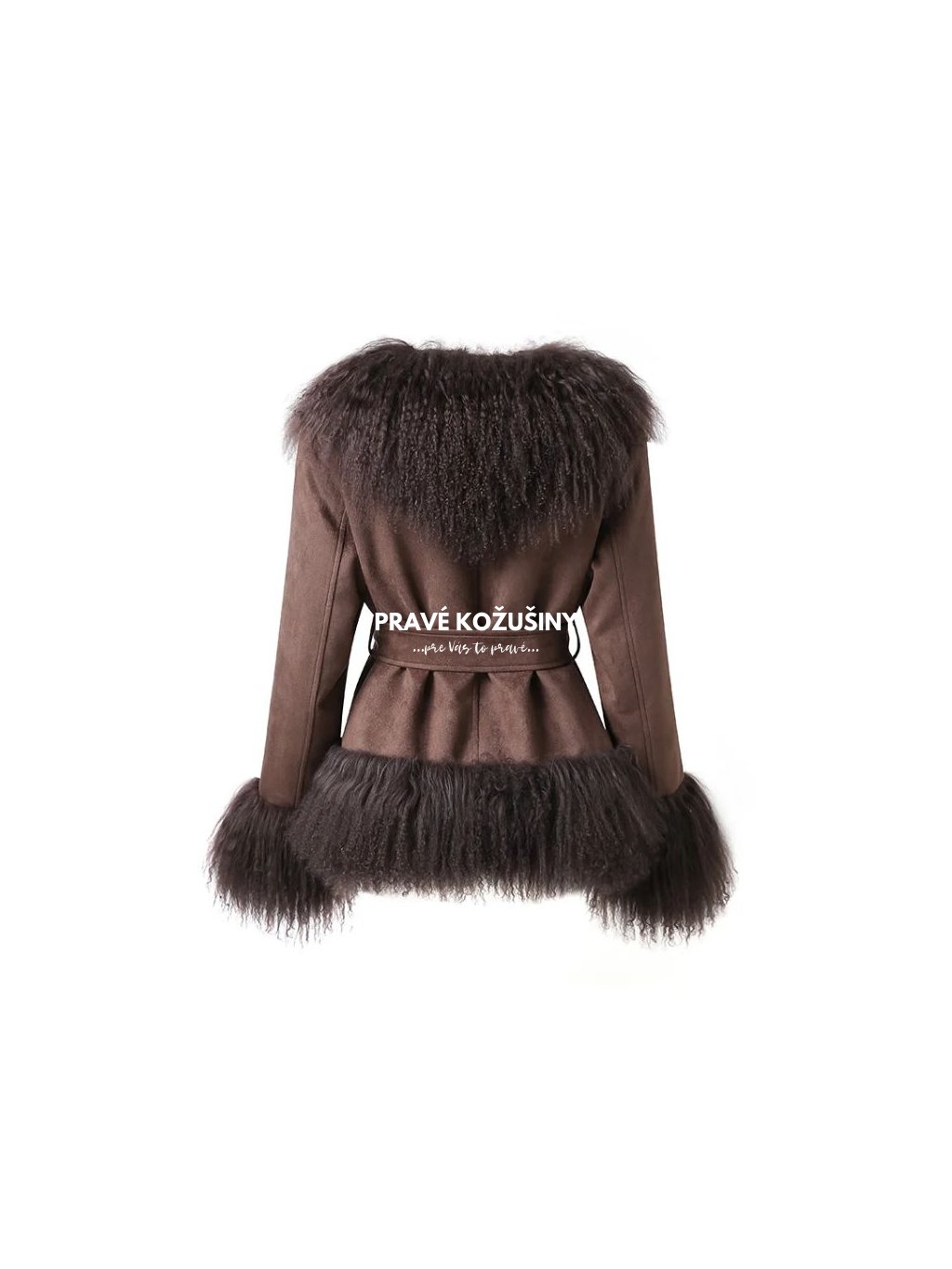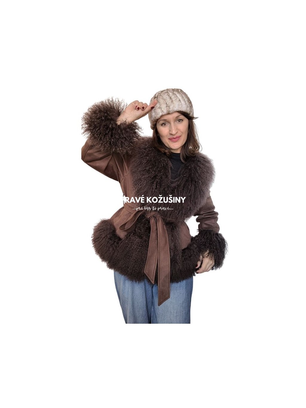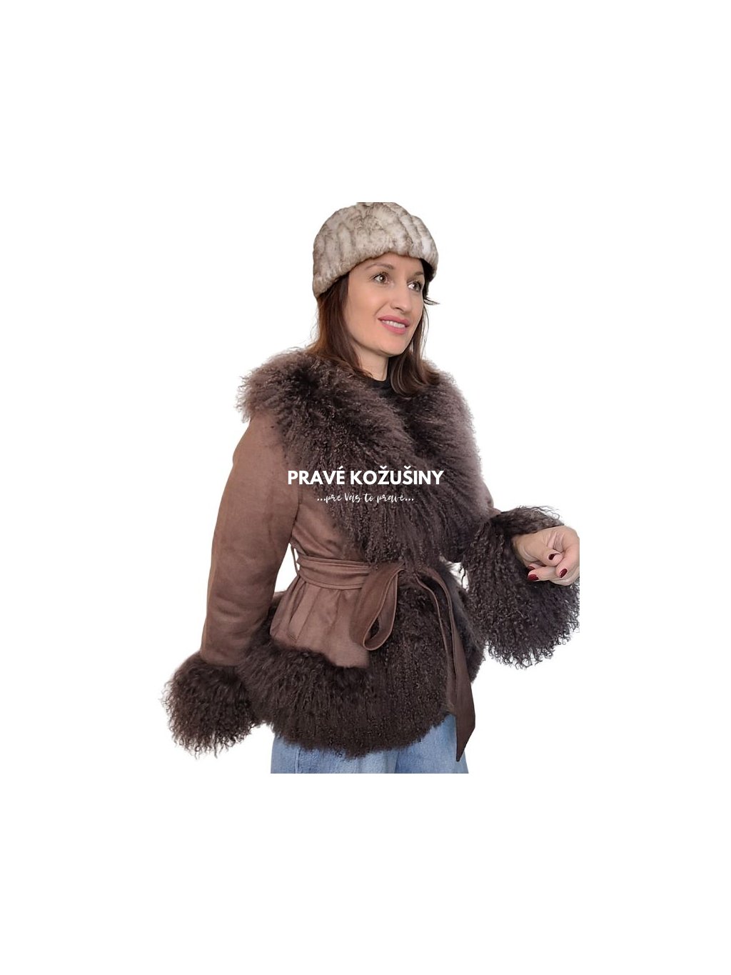 Hnedá dámska semišová páperová bunda s mongolskou ovcou, K229