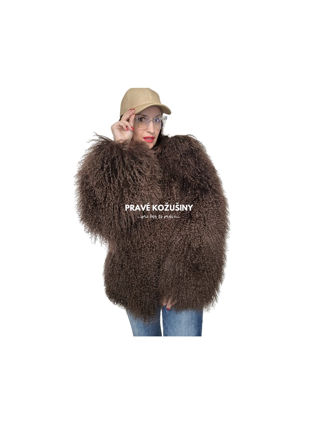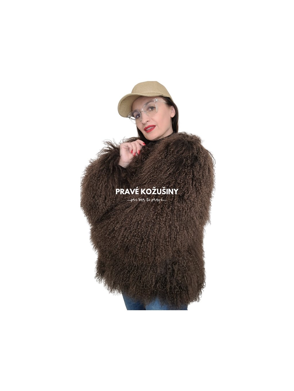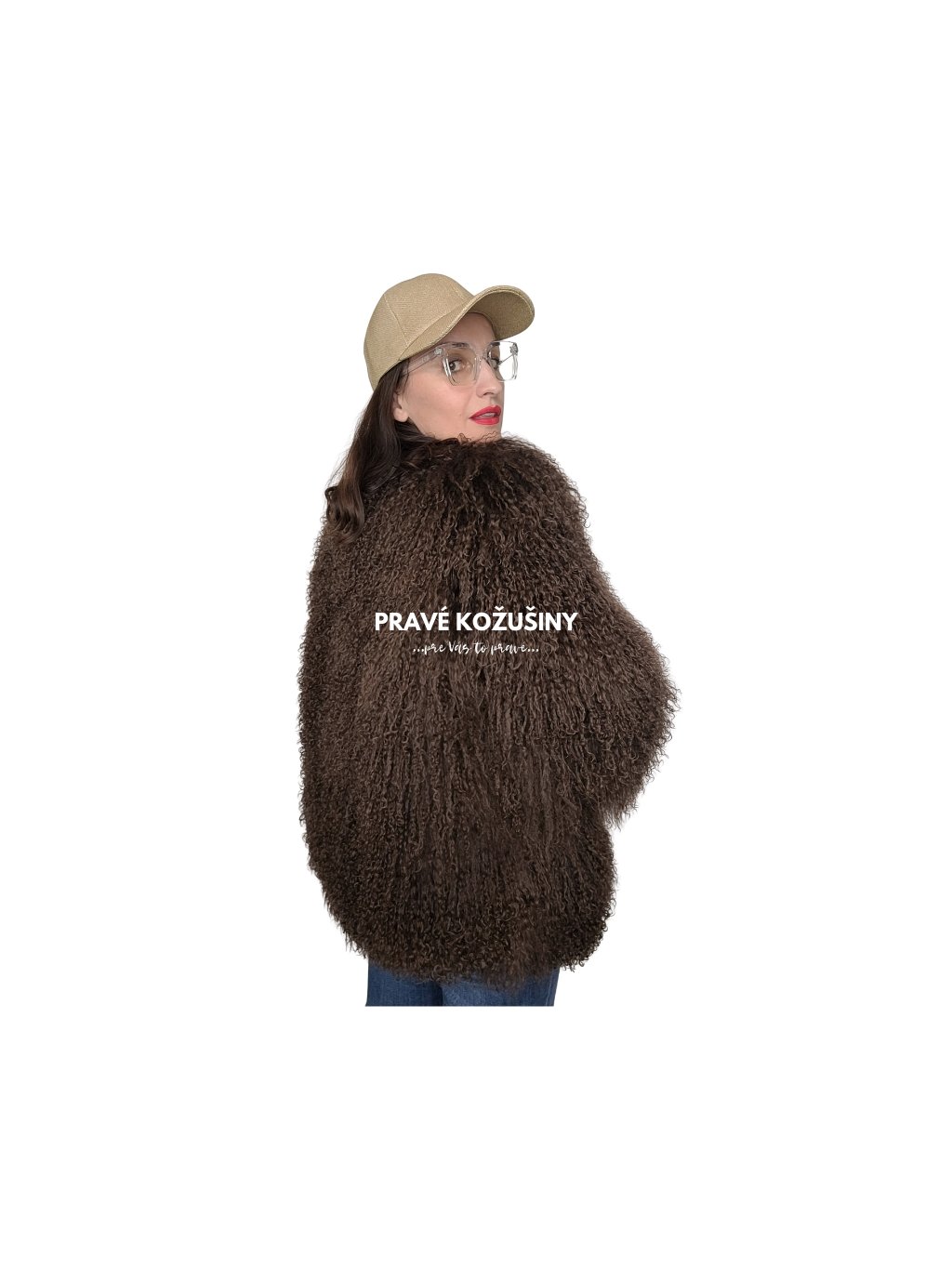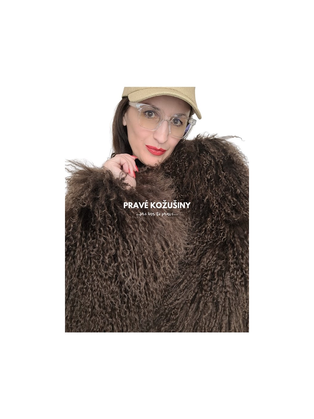 Kávovo hnedý kožuch z mongolskej ovce BEZ GOLIERA, K226