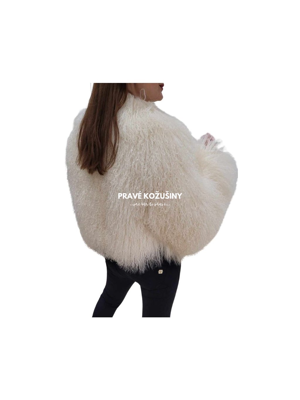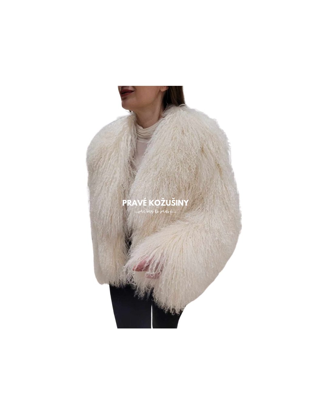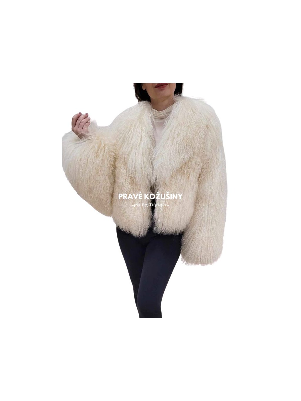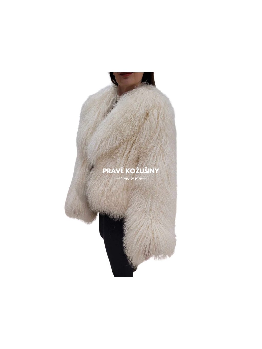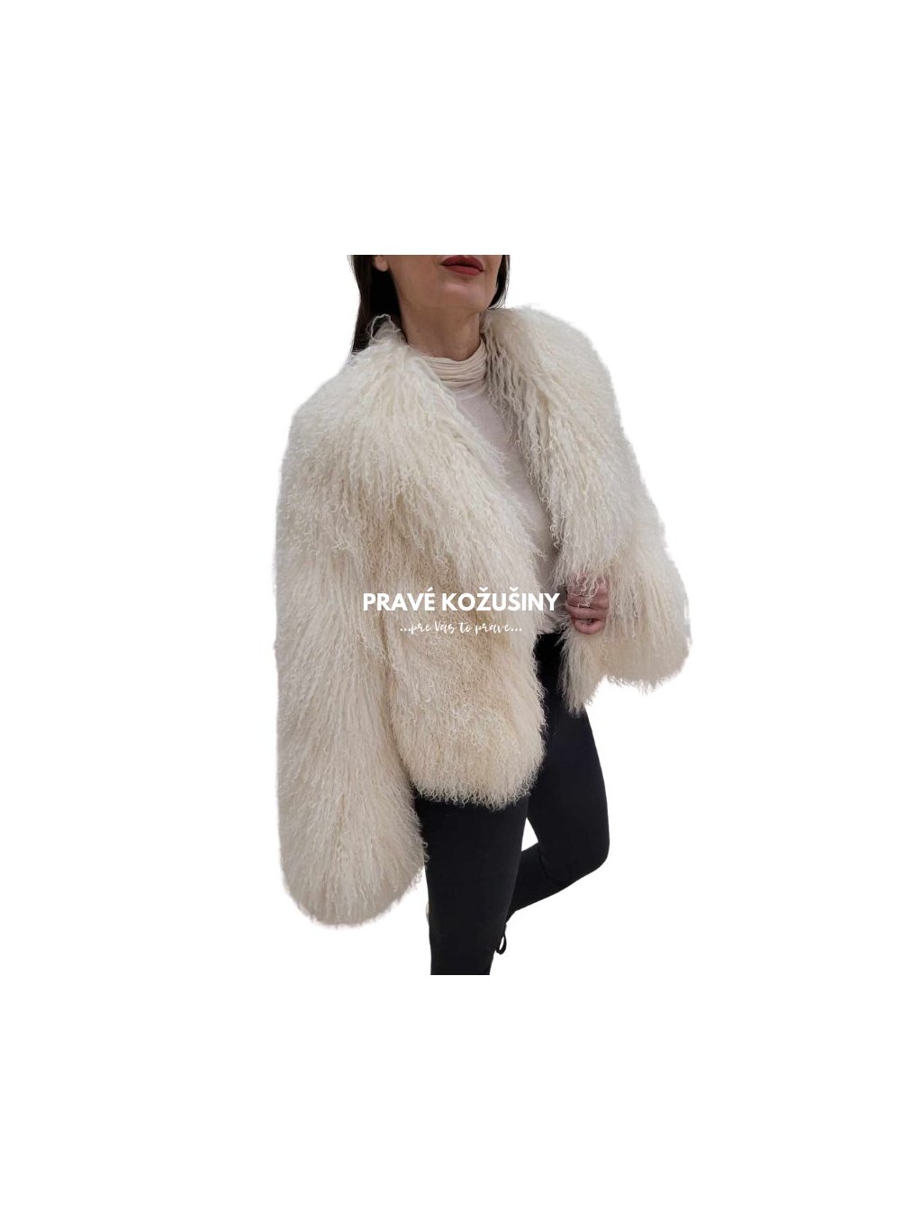 Krémový kožuch z mongolskej ovce S KLASICKÝM GOLIEROM, K230