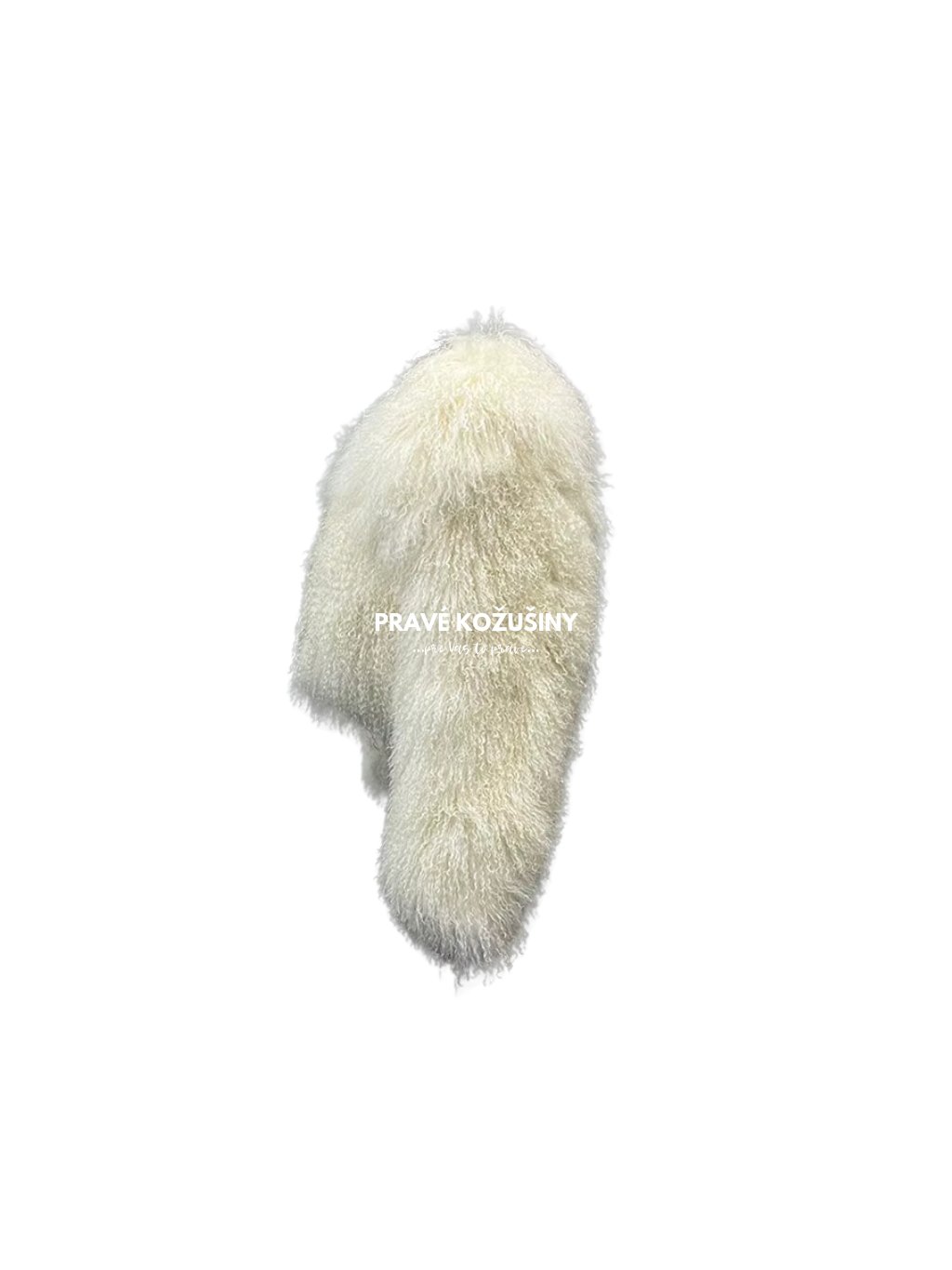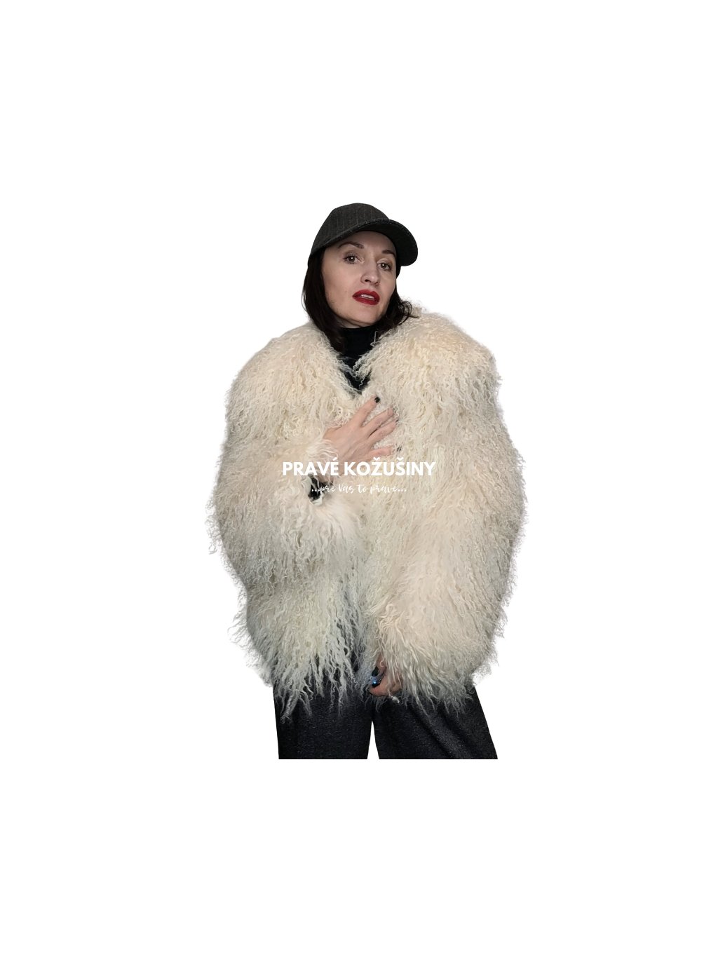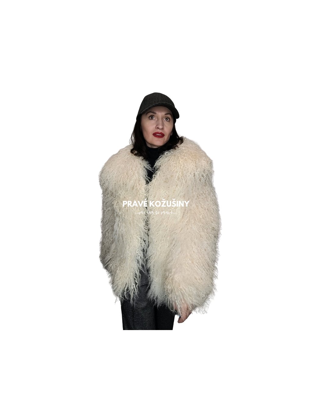 Krémový kožuch z mongolskej ovce SO ŠTVORCOVÝM GOLIEROM, K304