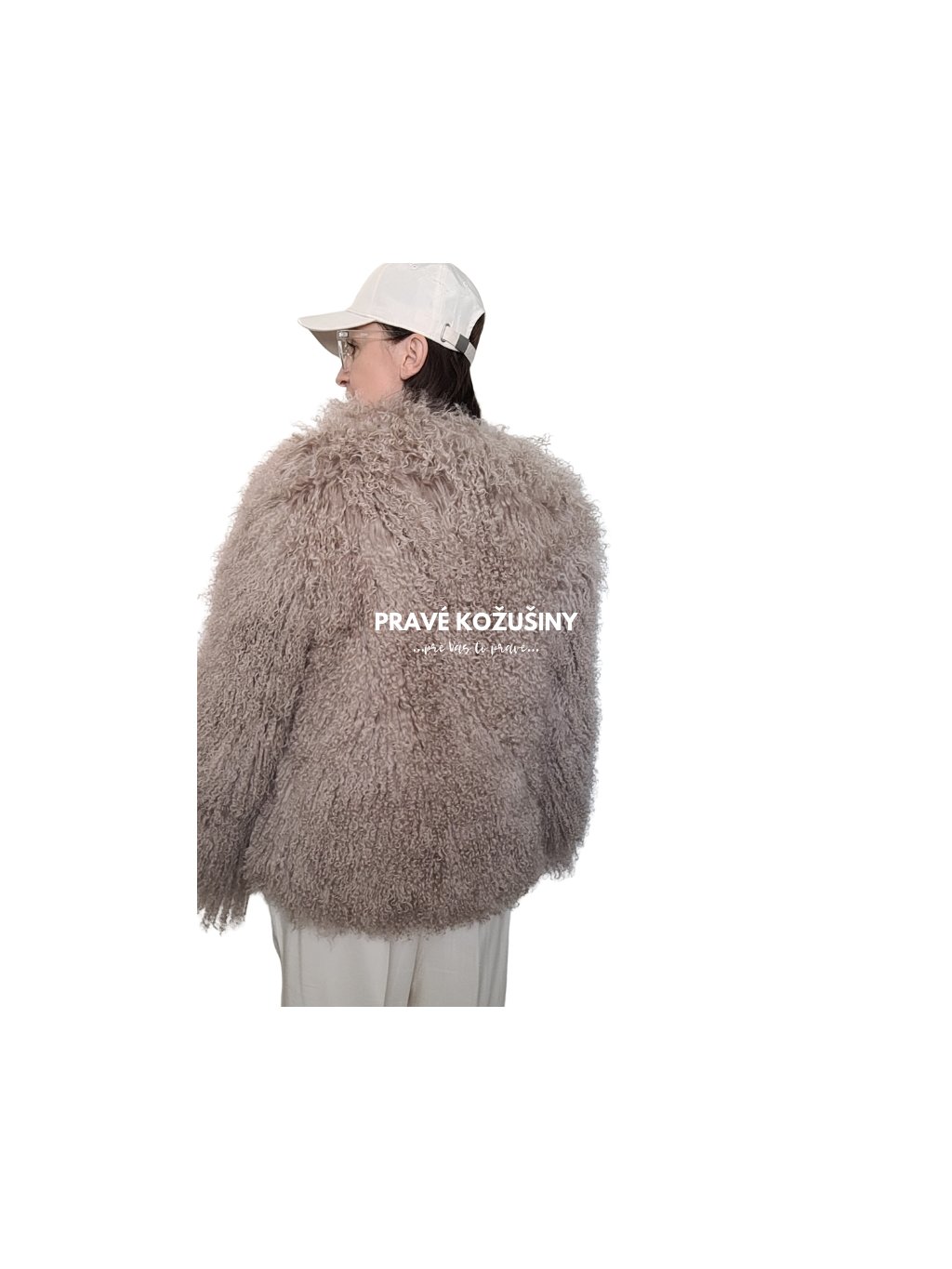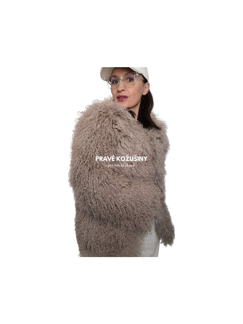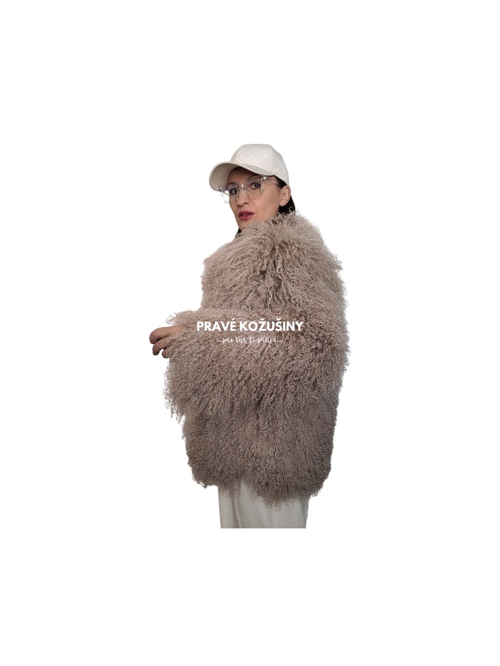 Latté kožuch z mongolskej ovce BEZ GOLIERA, K226