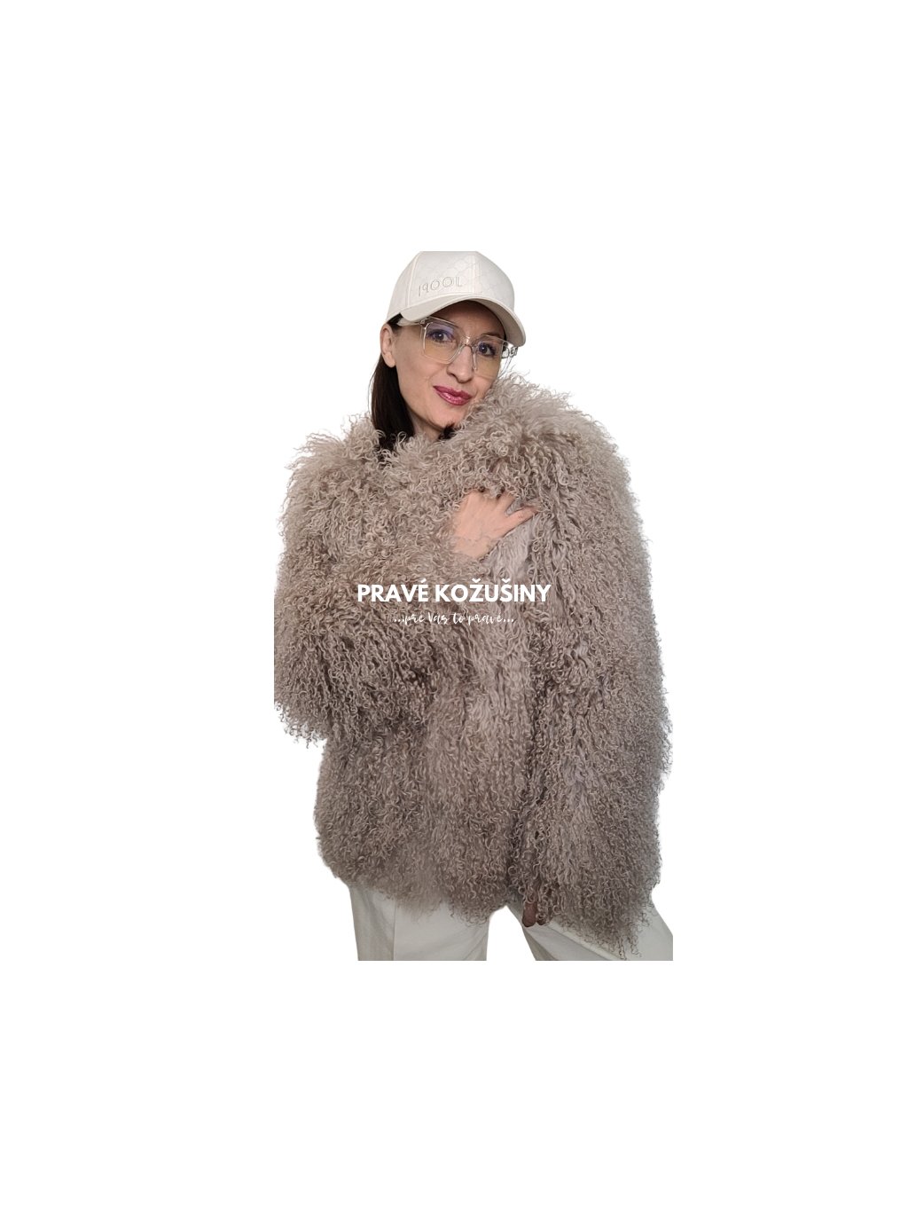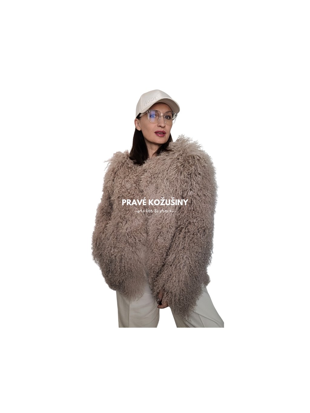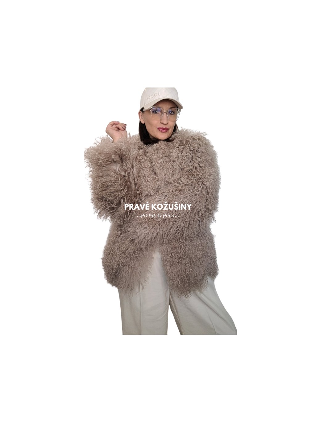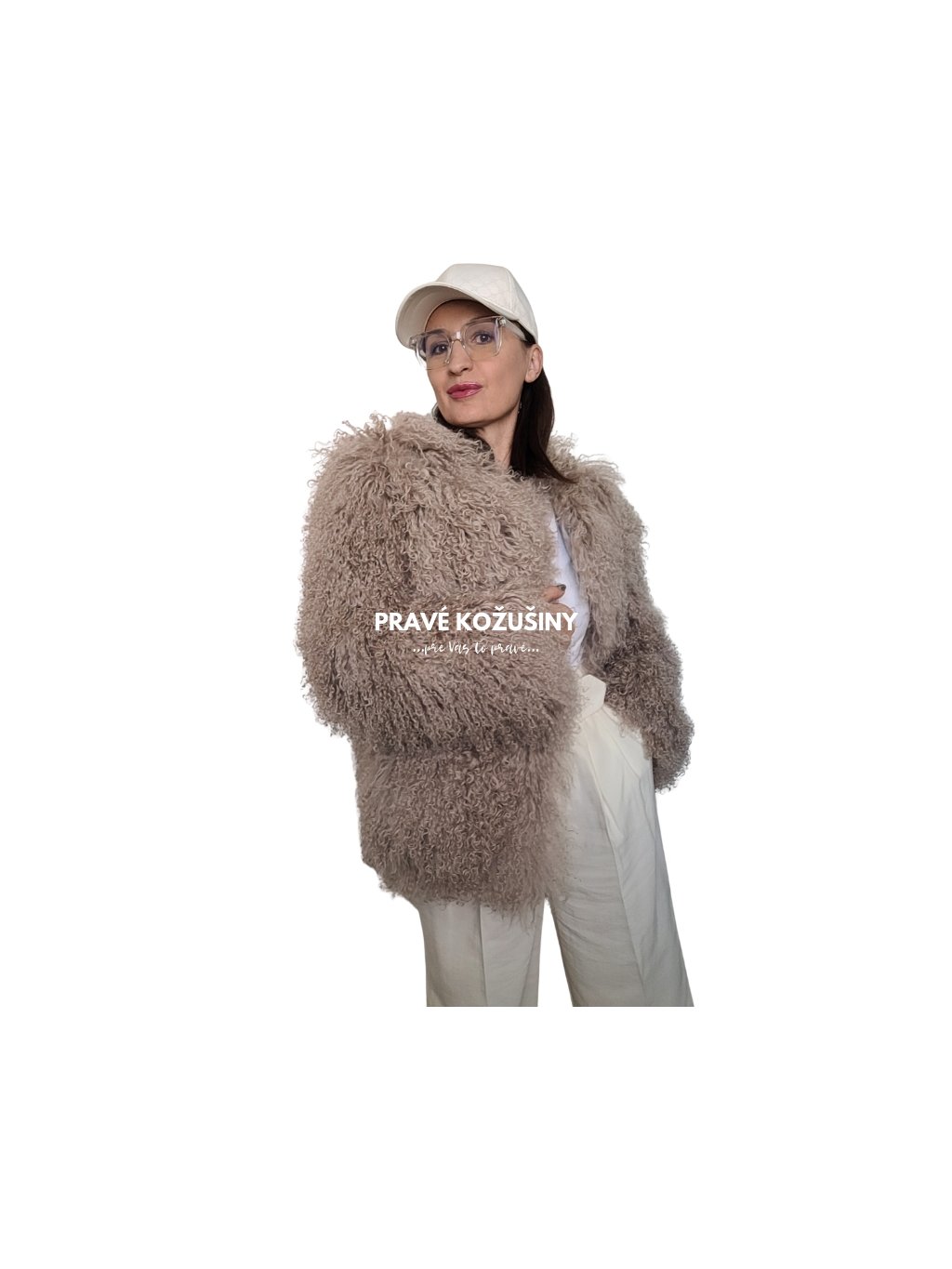 Latté kožuch z mongolskej ovce BEZ GOLIERA, K226