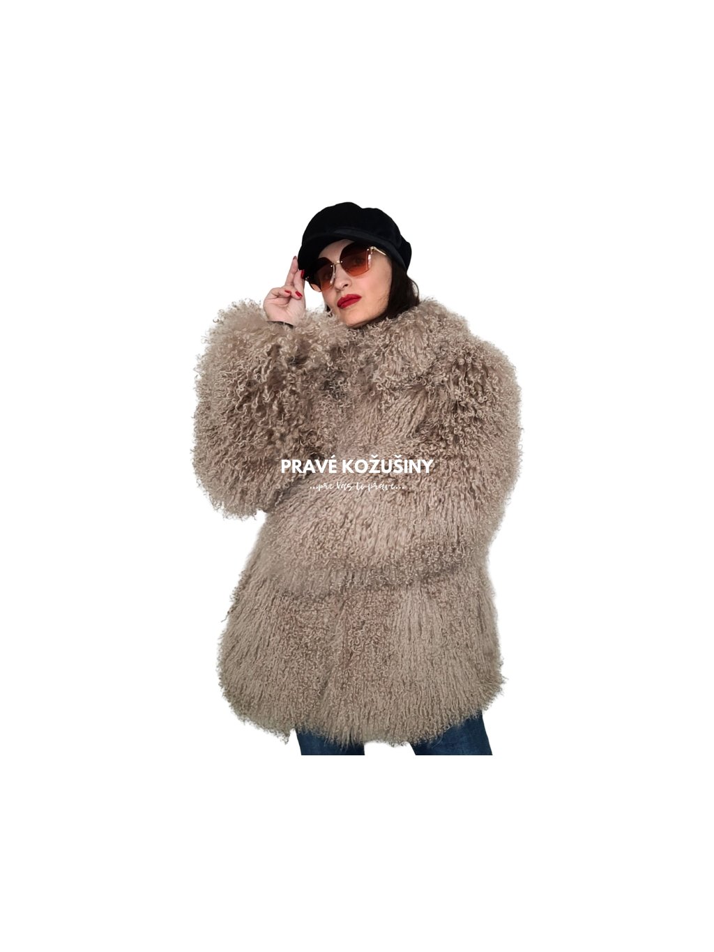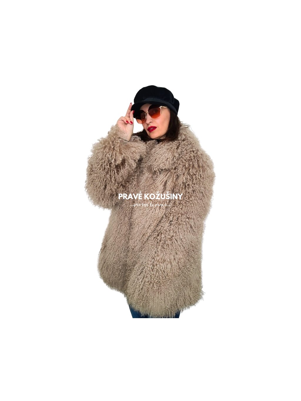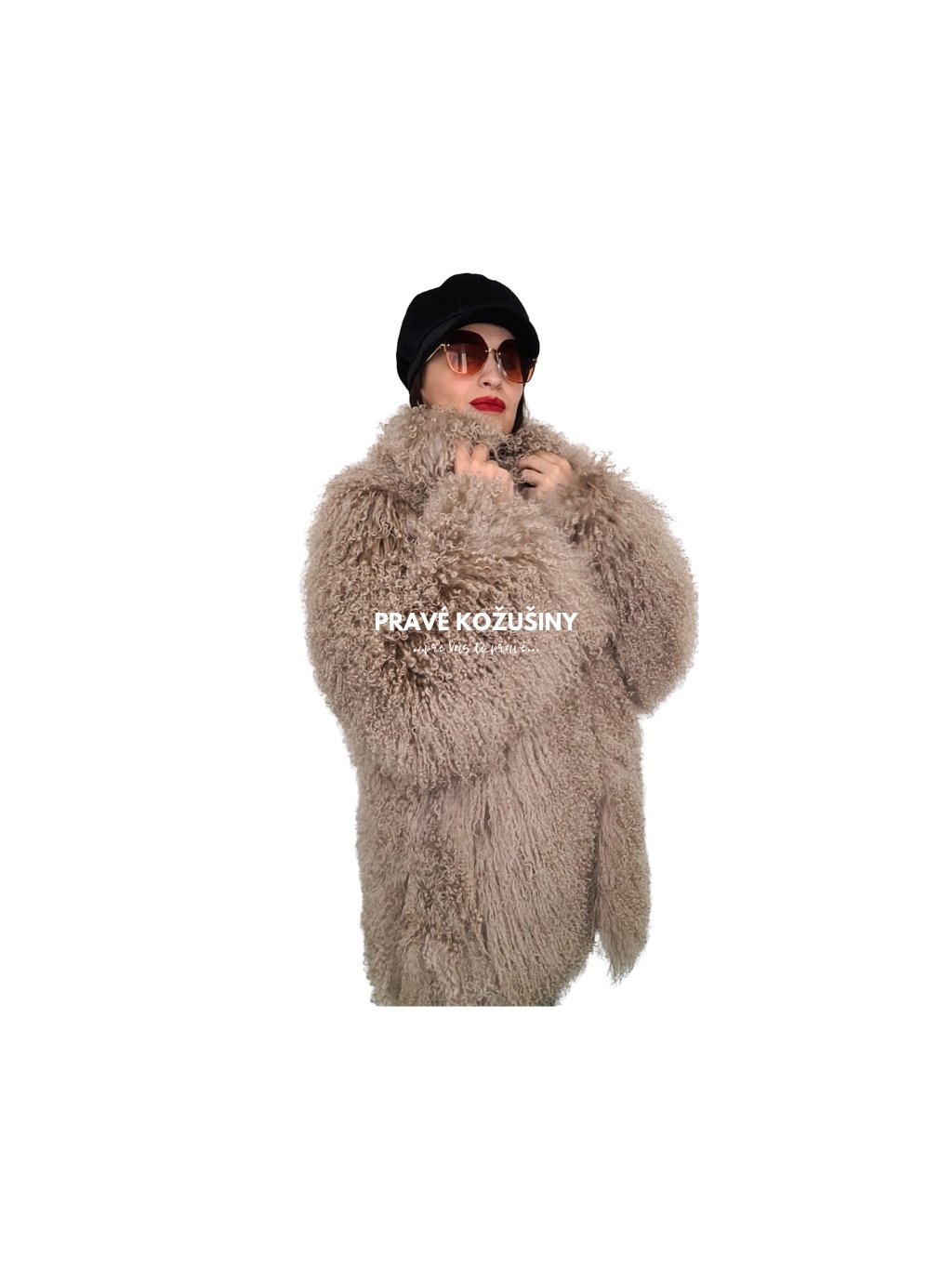 Latté kožuch z mongolskej ovce SO STOJAČIKOVÝM GOLIEROM, K227