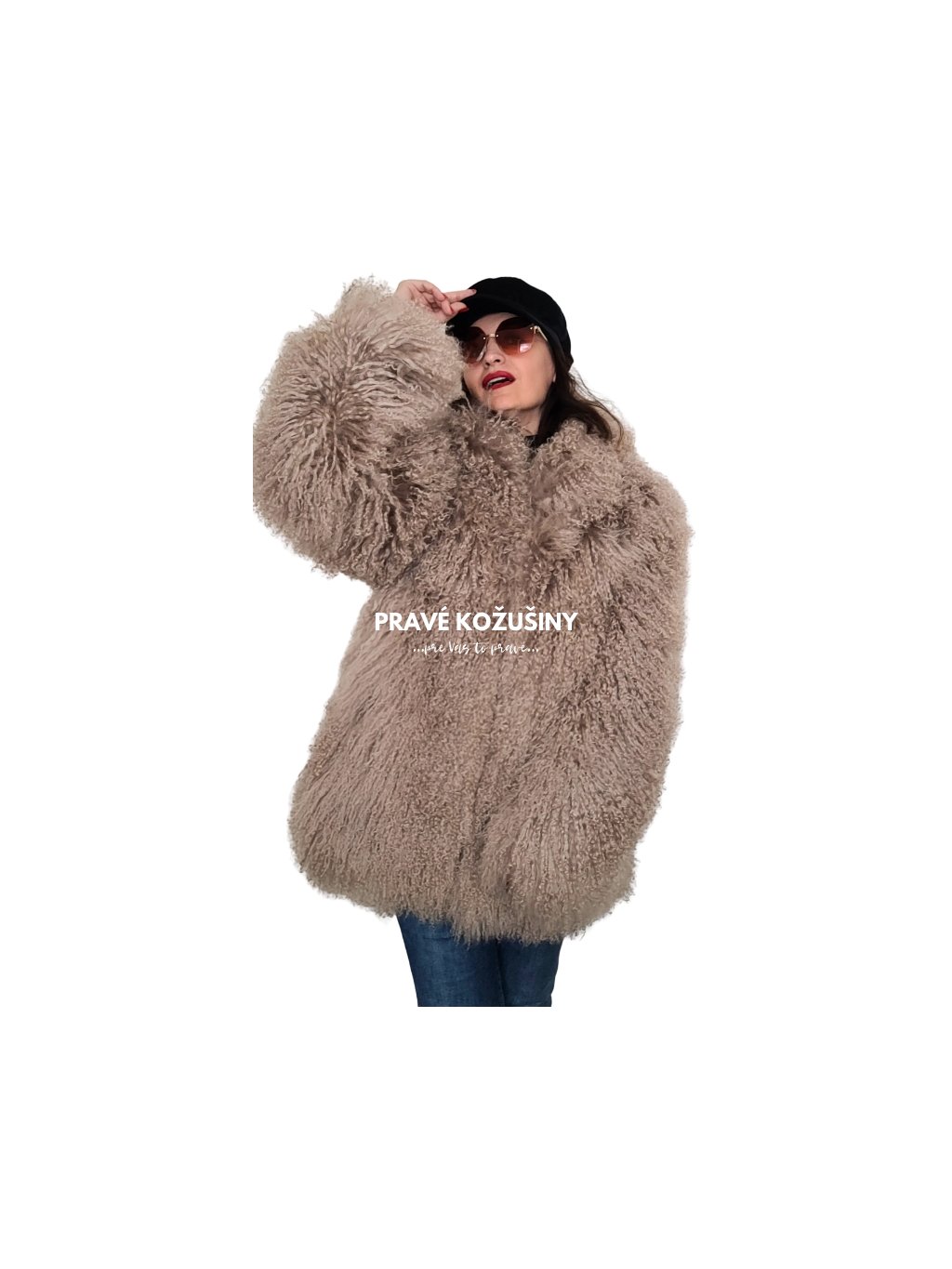 Kožuch je vyhotovený z pravej kožušiny mongolskej ovce.