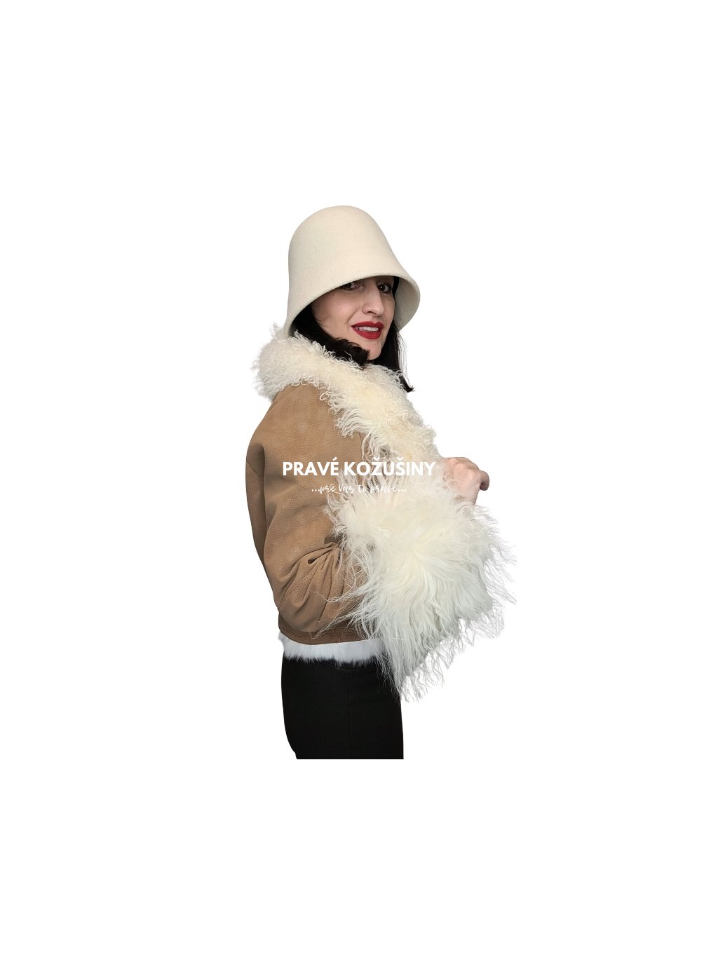Camel semišový kožúšok s mongolskou ovcou-zvnútra králik, K309