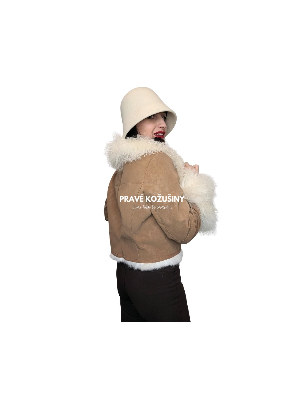 Zateplená pravou kožušinou králika, dámska, semišová (velúrová) bunda s pravou kožušinou mongolskej ovce.