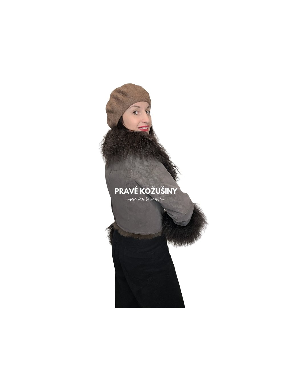Sivohnedý semišový kožúšok s mongolskou ovcou-zvnútra králik, K309