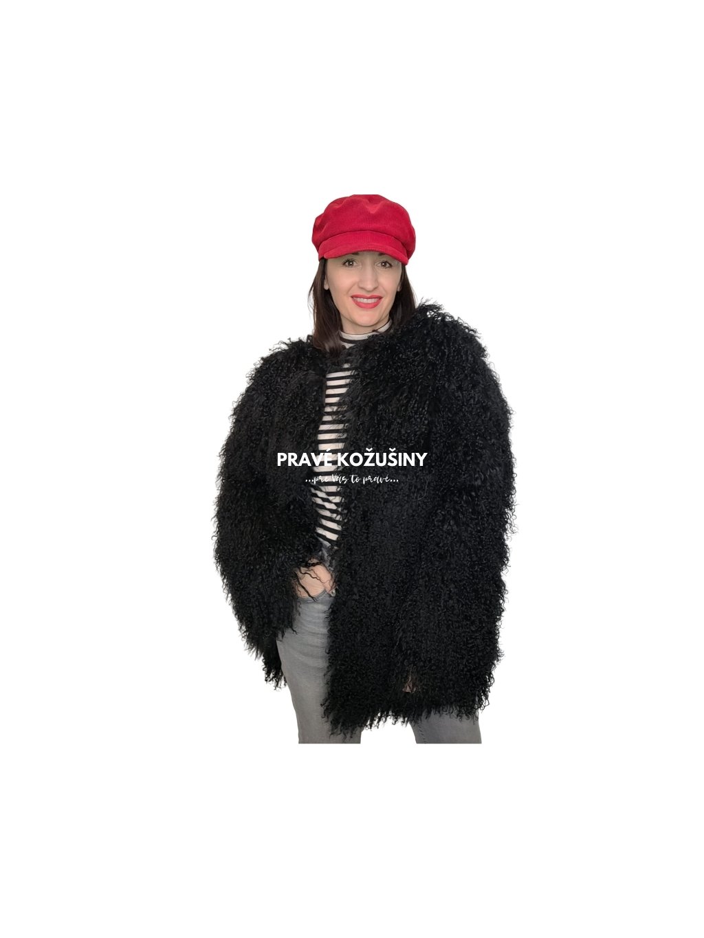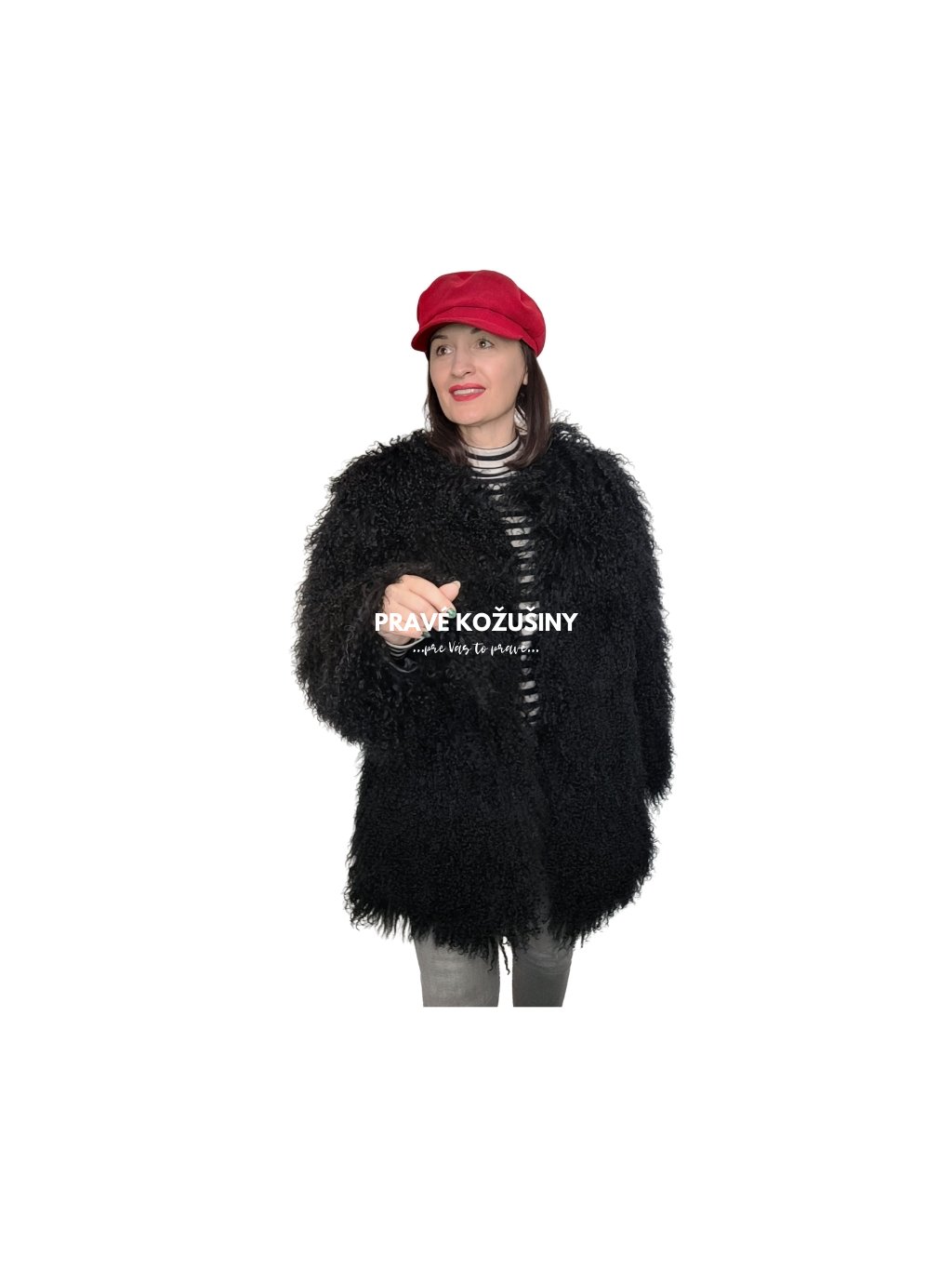 Kožuch je vyhotovený z pravej kožušiny mongolskej ovce.