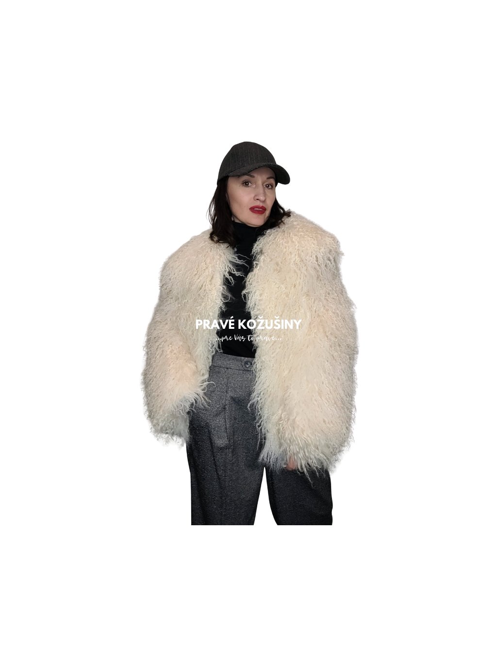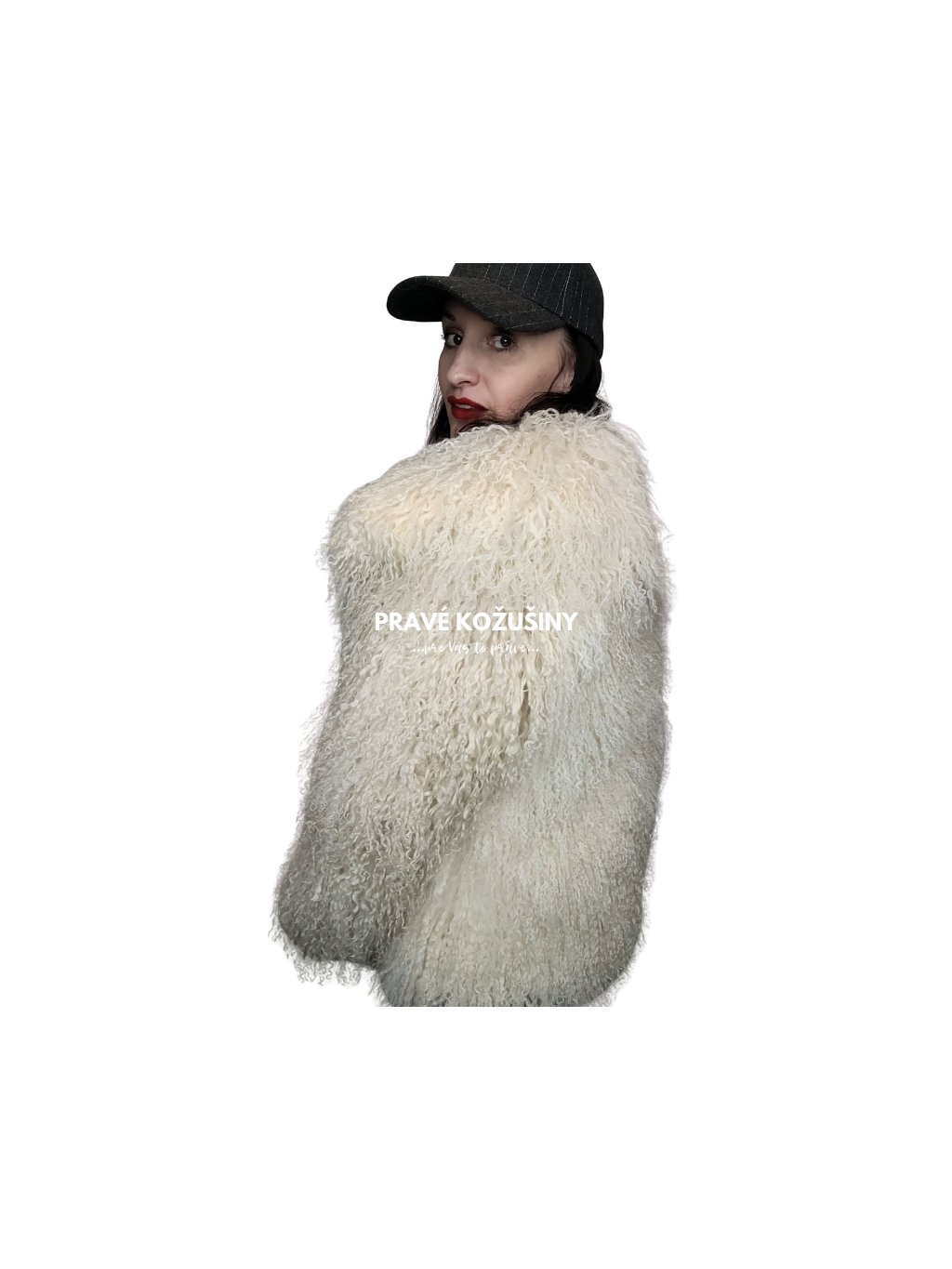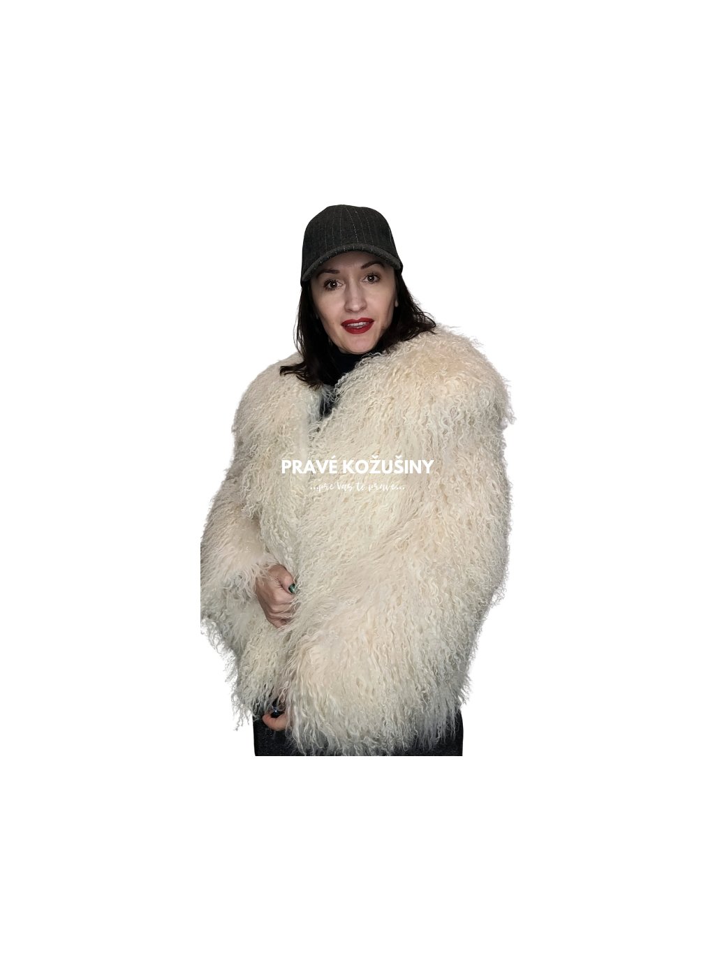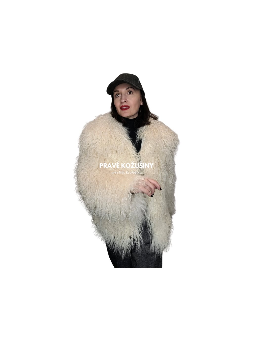 SKLADOM veľ. M - Krémový kožuch z mongolskej ovce SO ŠTVORCOVÝM GOLIEROM, K304