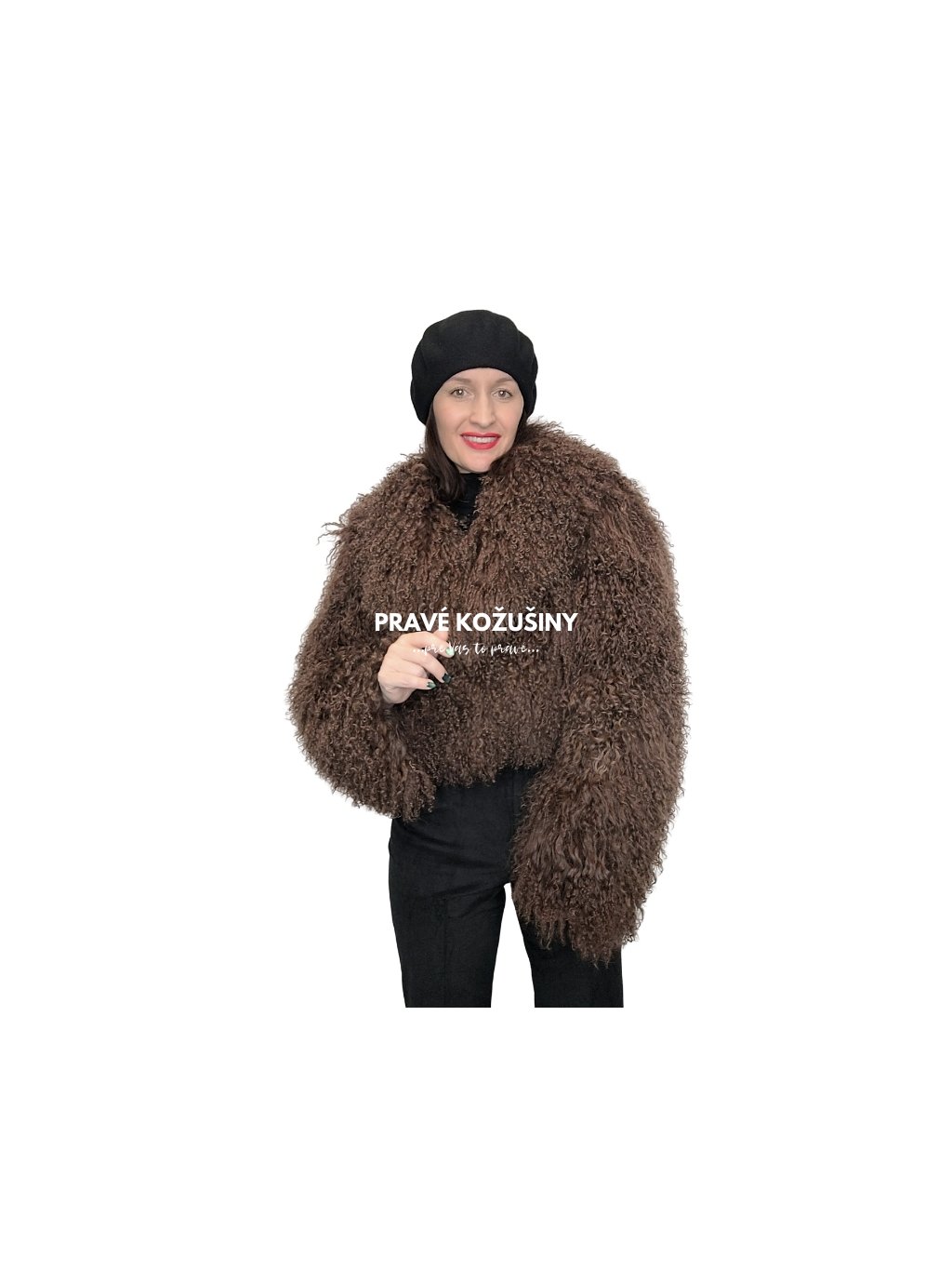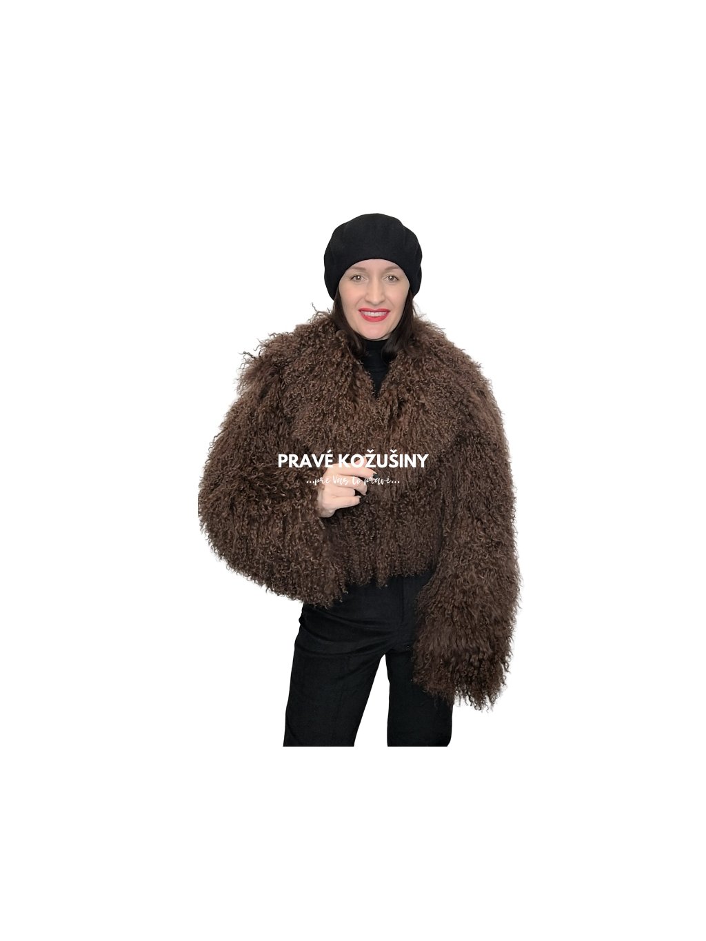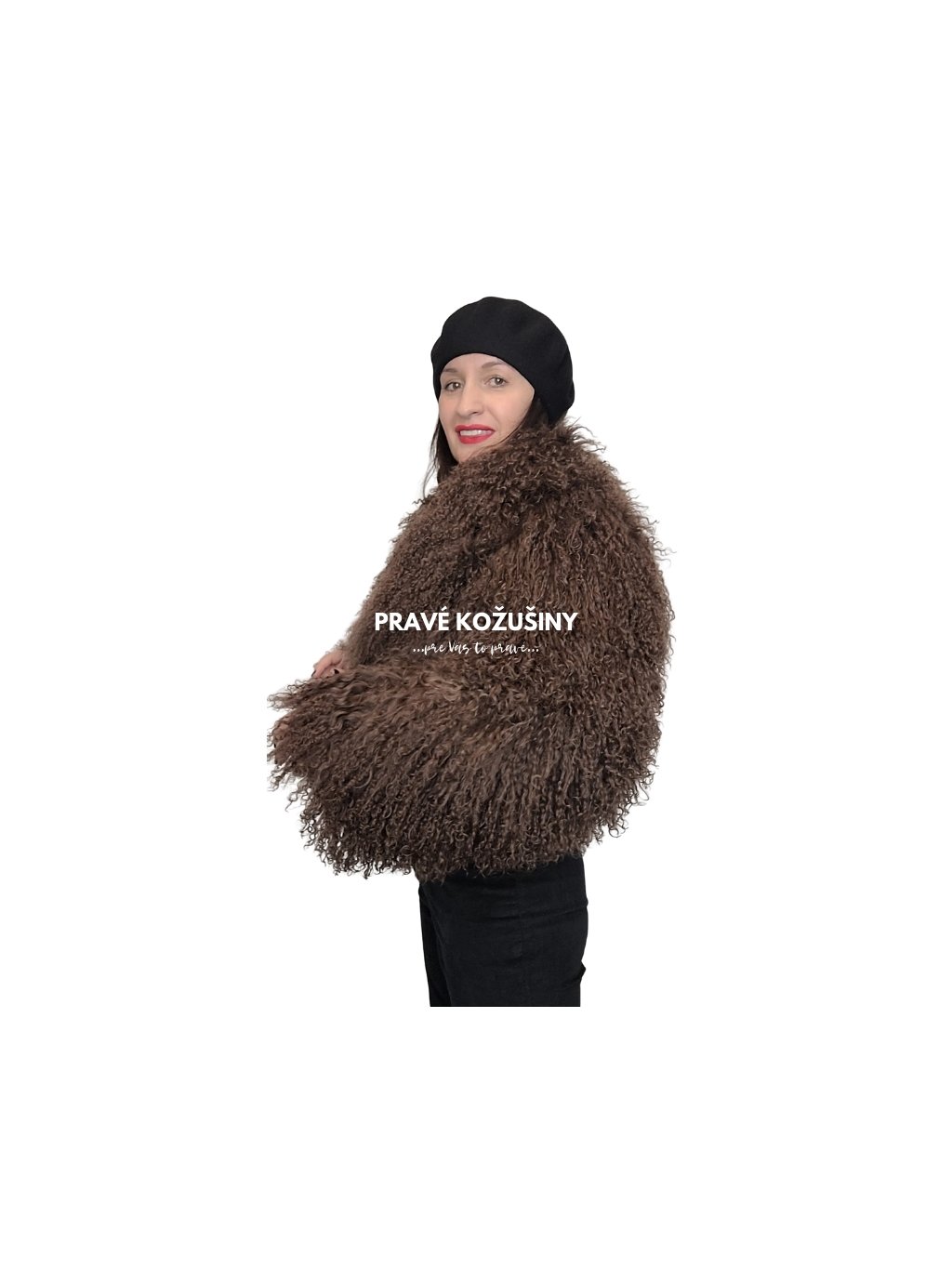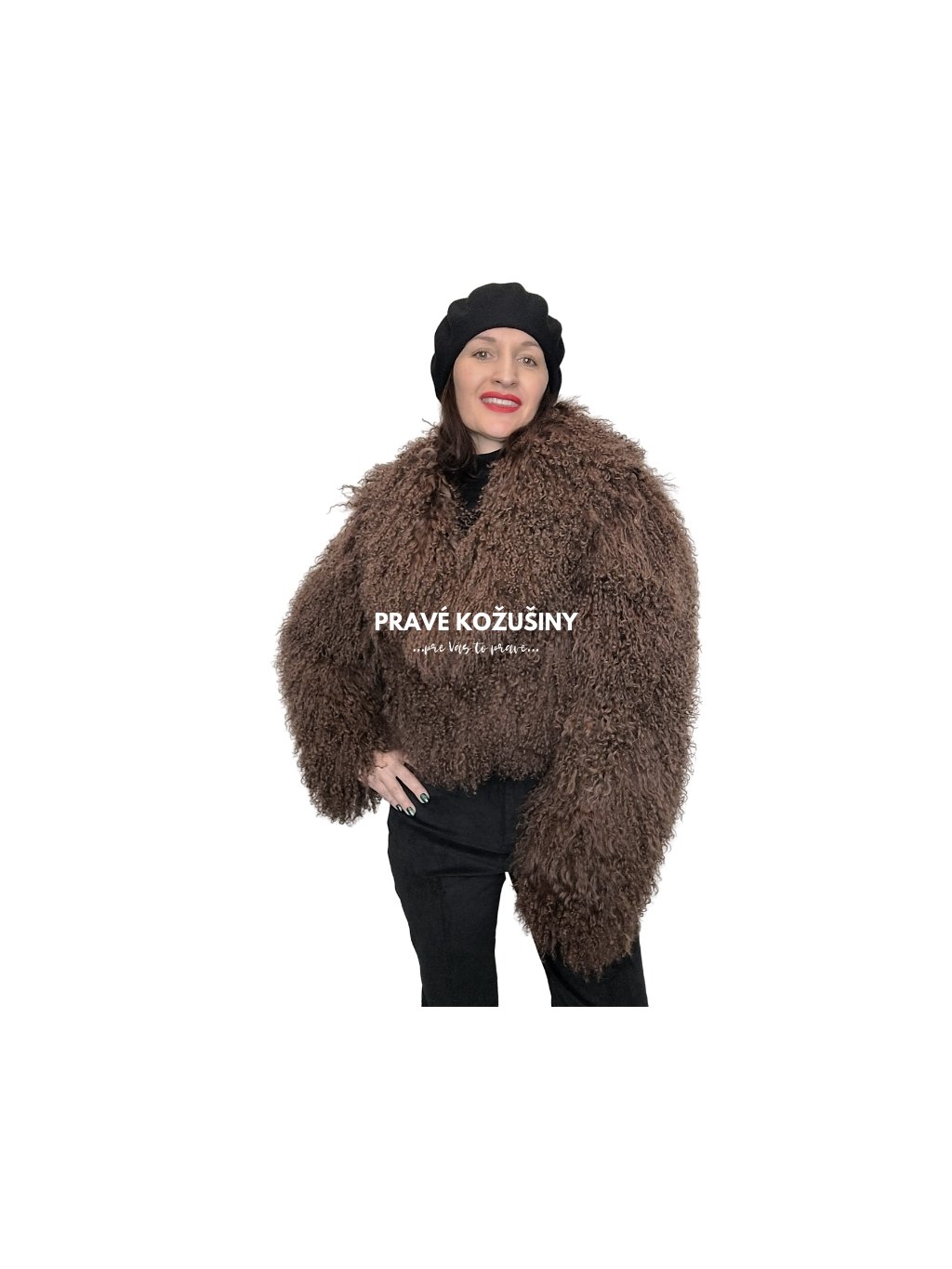 SKLADOM veľ. XXL - Čokoládovo hnedý kožuch z mongolskej ovce S KLASICKÝM GOLIEROM, K230