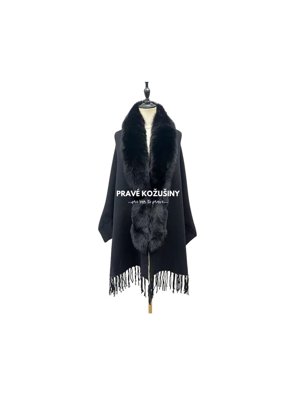 Čierna svetrová pelerínka s pravou kožušinou líšky, Pe22B