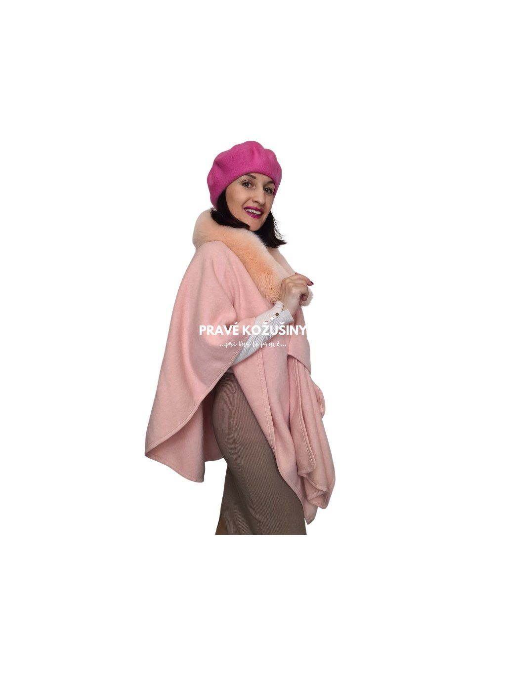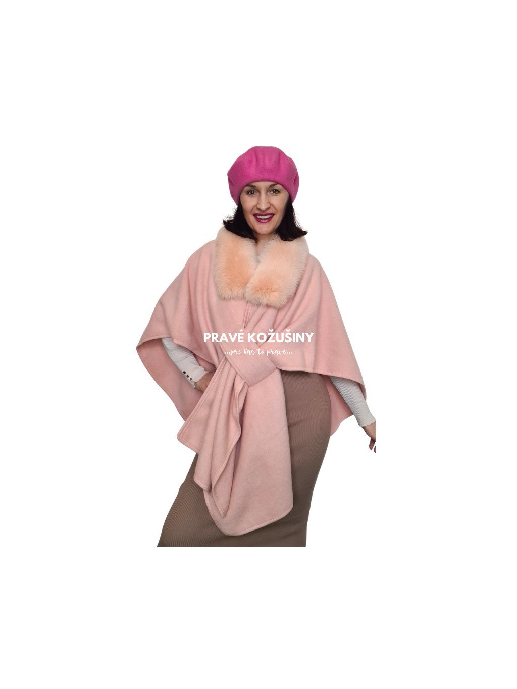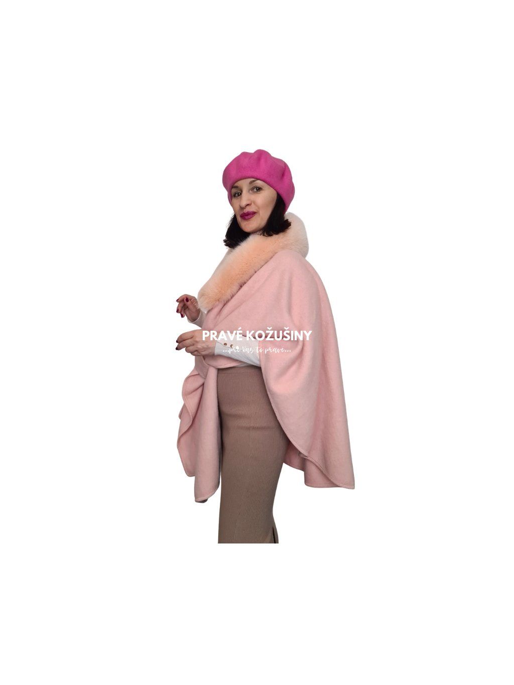 Rúžová pelerínka s pravou kožušinou líšky, Sv34
