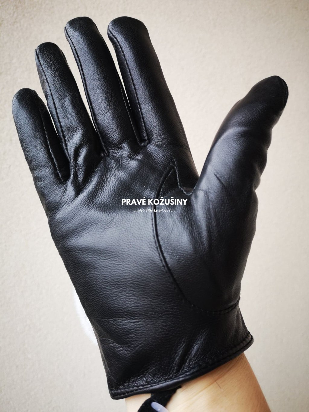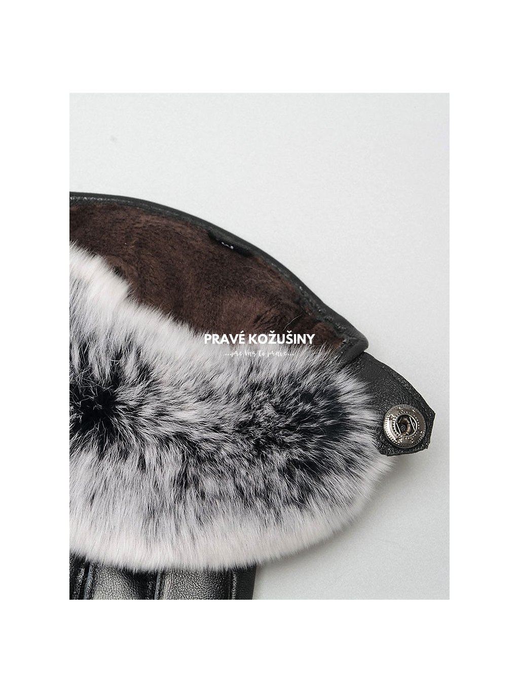 Čierne kožené prešívané rukavice s aplikácou z králika, R21
