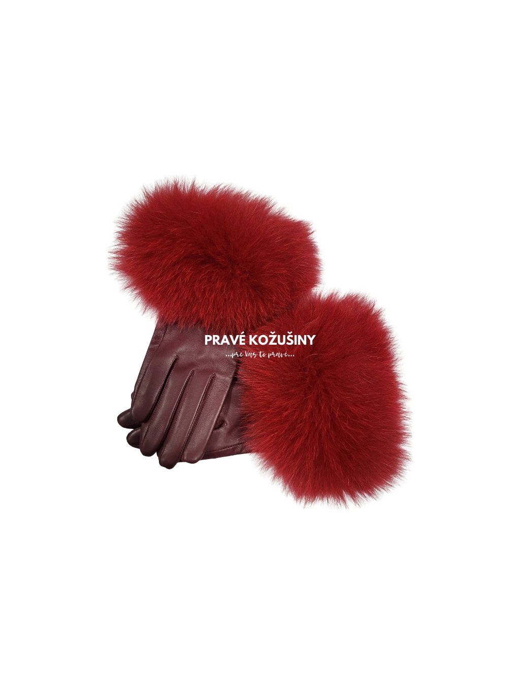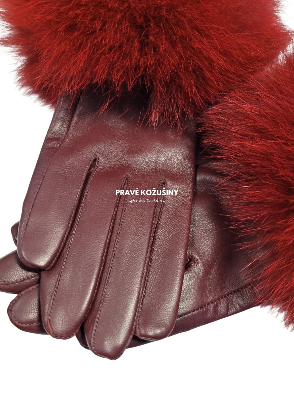 SKLADOM veľ. M - Bordové kožené rukavice s pravou kožušinou líšky, R04