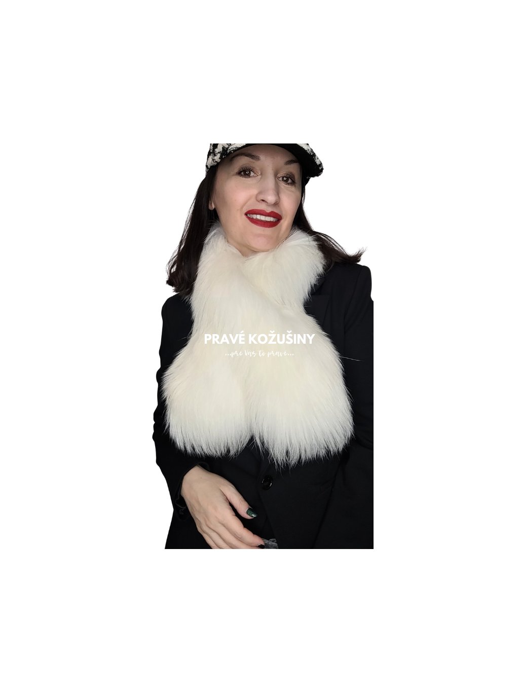 Kožušinový šál bielej farby vyrobený z najkvalitnejšej prírodnej kožušiny mývala.