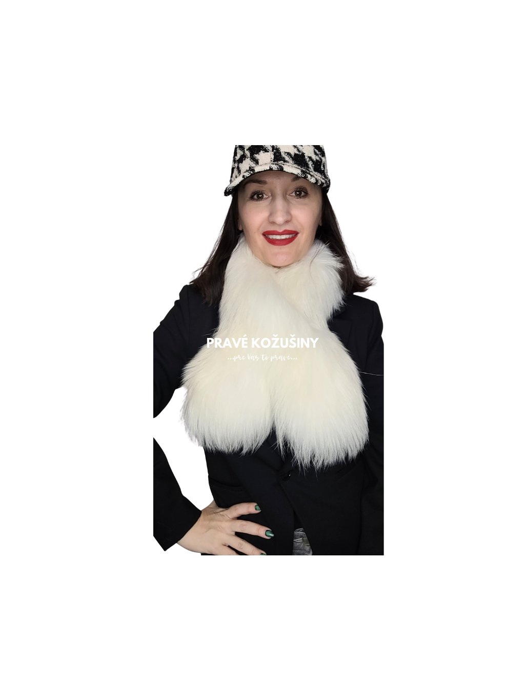 Biely šál z pravej kožušiny mývala, S60
