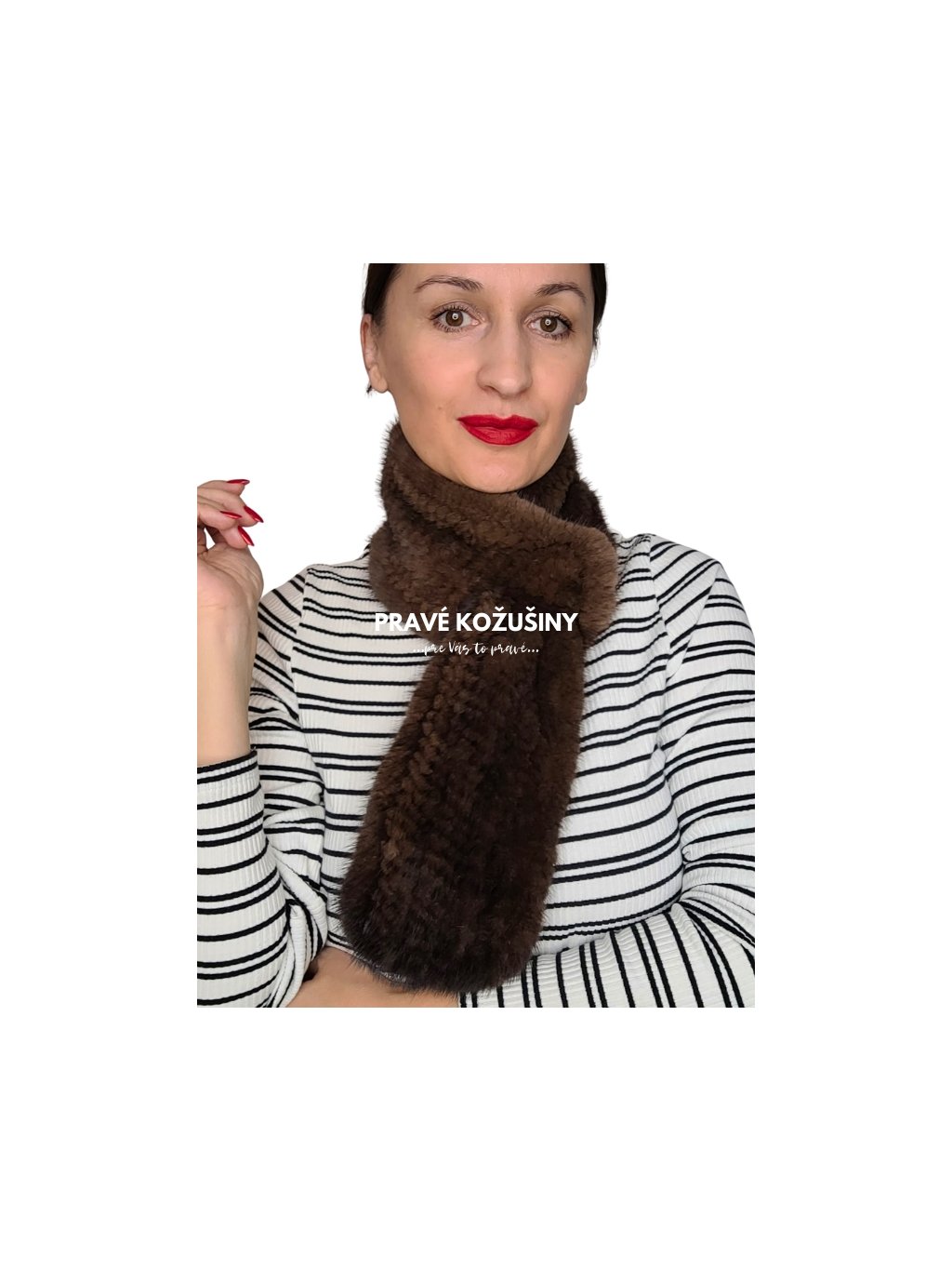 Jednoduchý a pritom nadčasový šál z pravej kožušiny norky. Klasický kožušinový úplet.