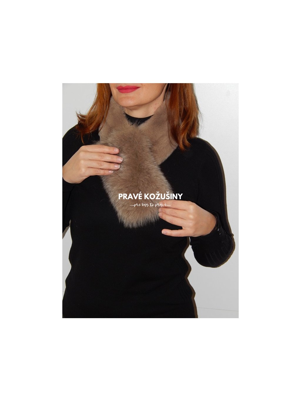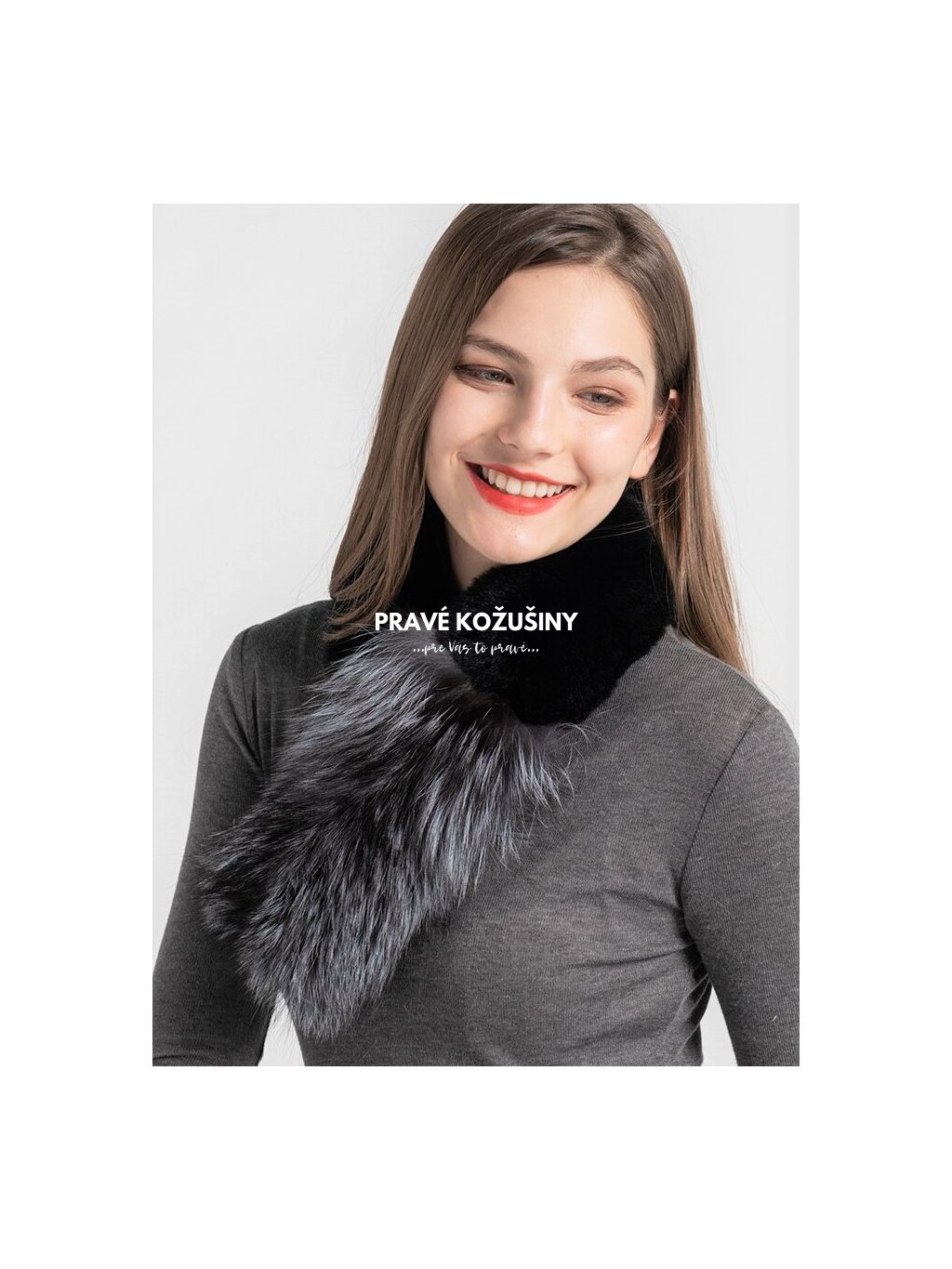 Praktický šál z pravého králika a líšky, s úpletovou podšívkou a zapínaním na magnet.