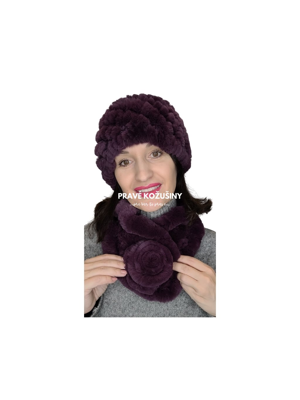 Elegantný set do naozajstnej zimy!Set je vyrobený z pravej kožušiny králika Rex a je mimoriadne príjemný na dotyk.Čiapka je elastická a veľmi teplá. Akrylová, úpletová podšívka.Šál s aplikáciou kvetu z pravej kožušinky králika.
